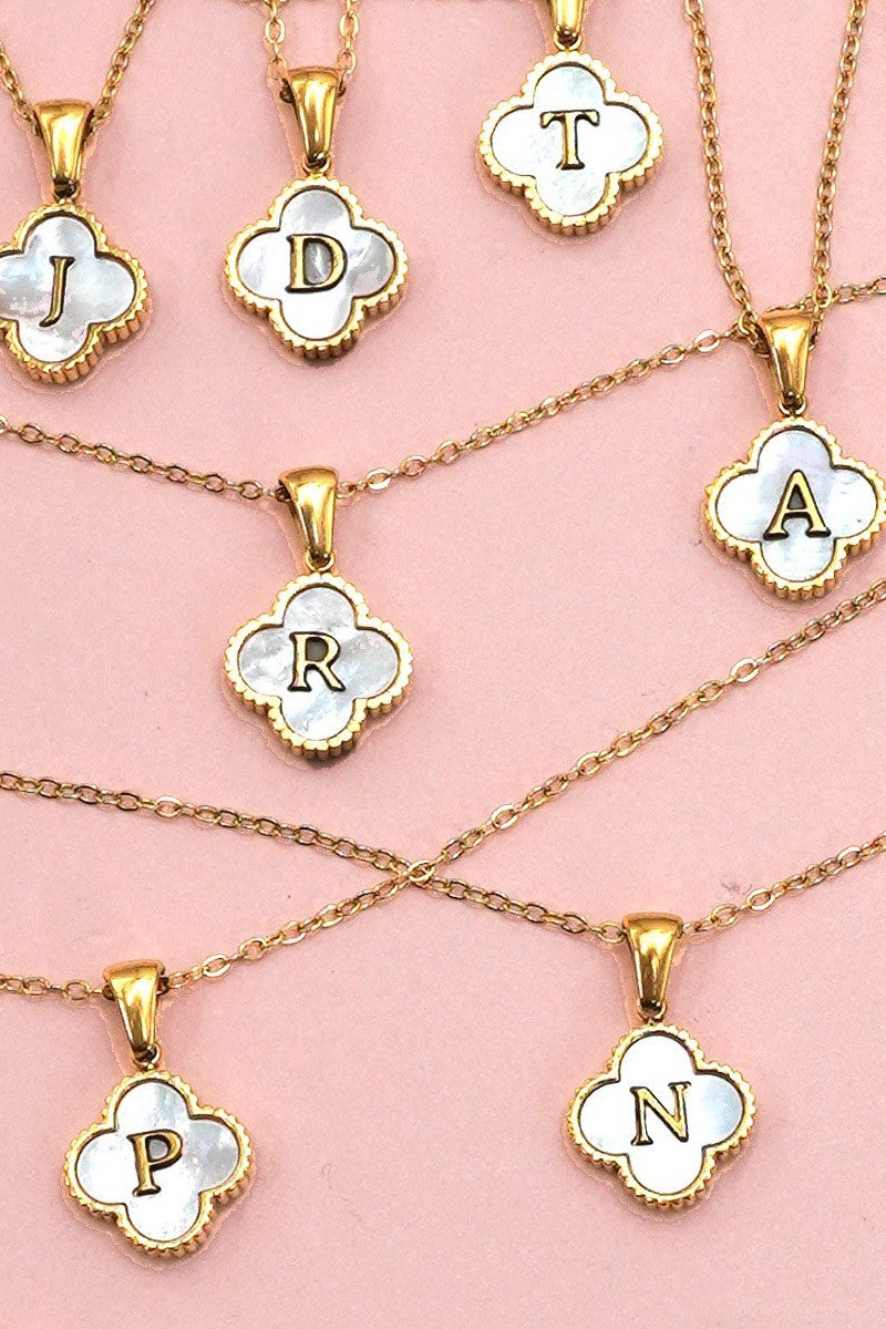 18k Stainless Steel Mother of Pearl Clover Initial Necklace