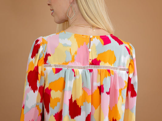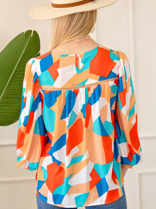 Abstract Ruffled Sleeve Blouse