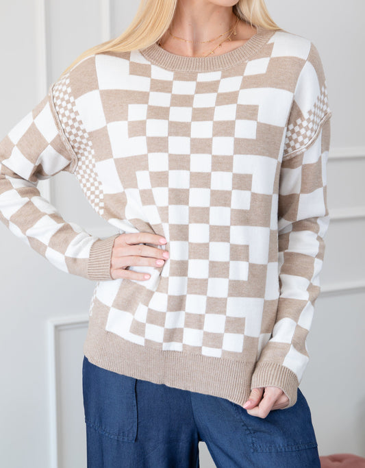 Colorblock Cable Knit Round Neck Sweater | S-XL