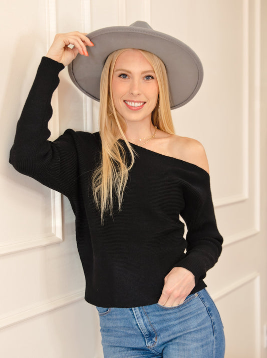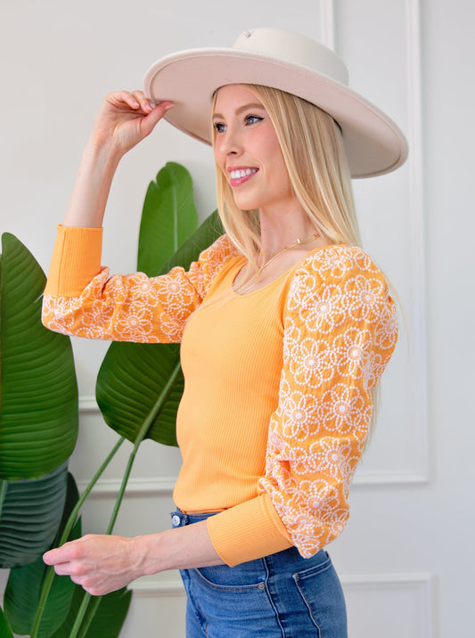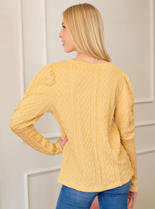 Colorblock Bishop Sleeve Ribbed Trim Sweater