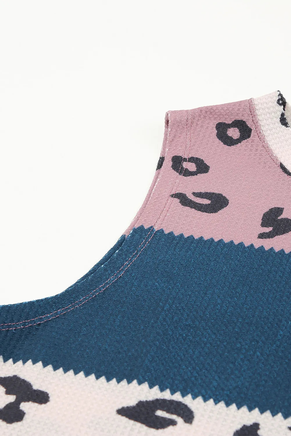 This women's tank top is loved by many because it's made of a breathable and soft knitted fabric. It's sleeveless and looks sexy with a classic shoulder-revealing design. The colorblock and animal spotted print make it stylish, while the overall style is simple and chic. It's also made with fine quality.