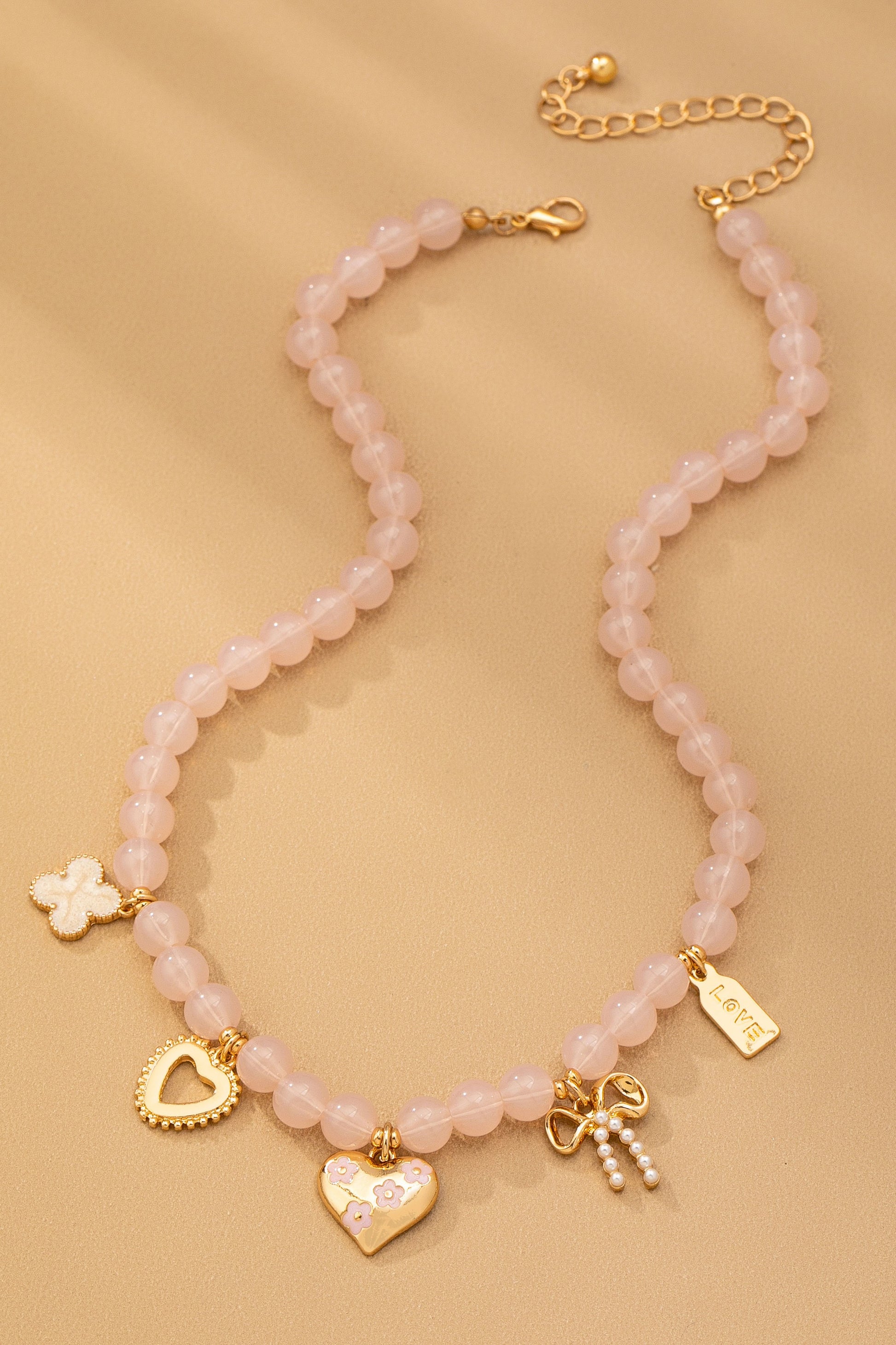 Beaded Charm Necklace-Heart Bow Clover