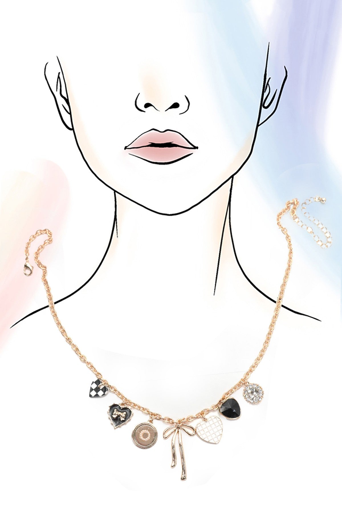 A playful mix of charms — checker heart, rhinestone, bow, and classic hearts — all on a sleek chain. Trendy, meaningful, and perfect for layering or wearing solo.