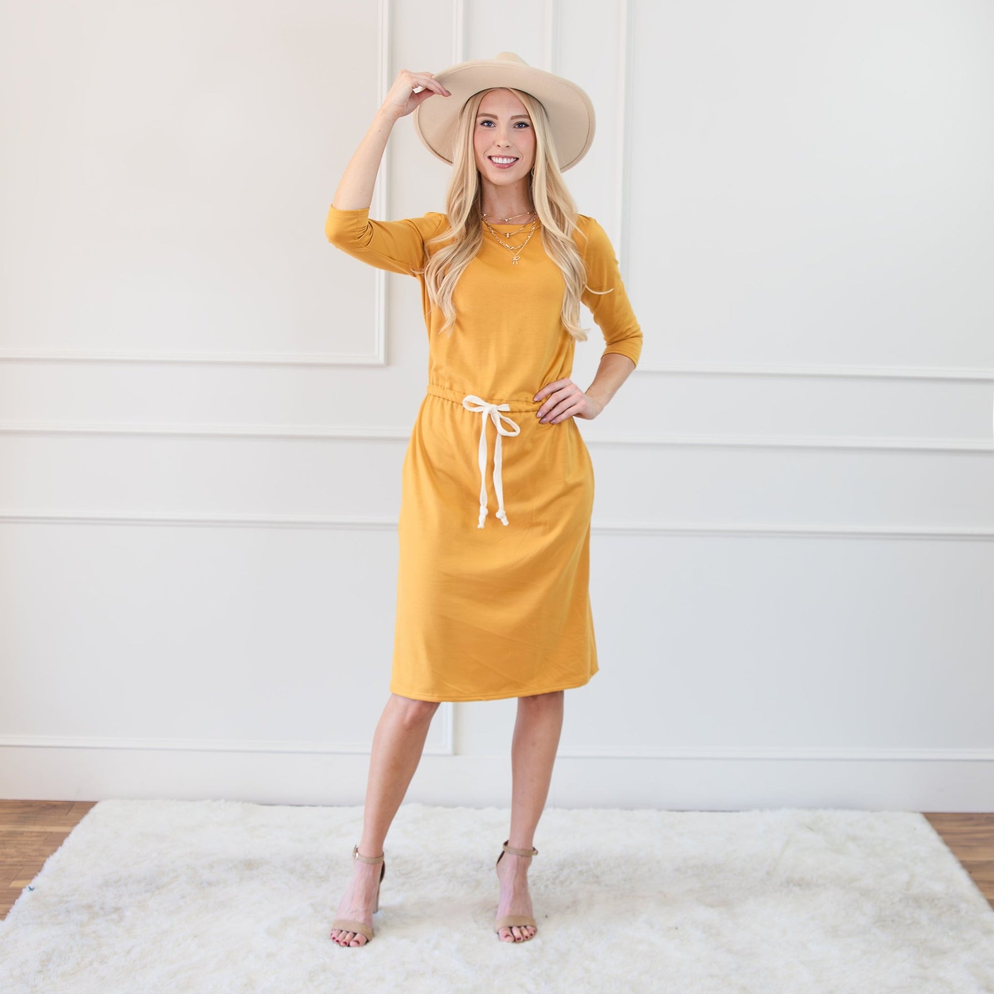 Discover the perfect balance of comfort and style with our Easy 2 Tone Waist String Dress! With an elastic and drawstring closure, you can easily adjust the waistline to your liking while also hiding any belly concerns. Plus, the hidden pockets add convenience without affecting the elegant skirted shape. Look and feel your best in this must-have dress!