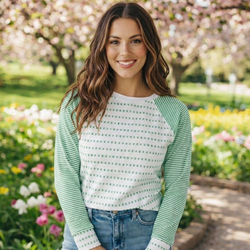 Easy Patchwork Stripe Raglan Top | S-XL