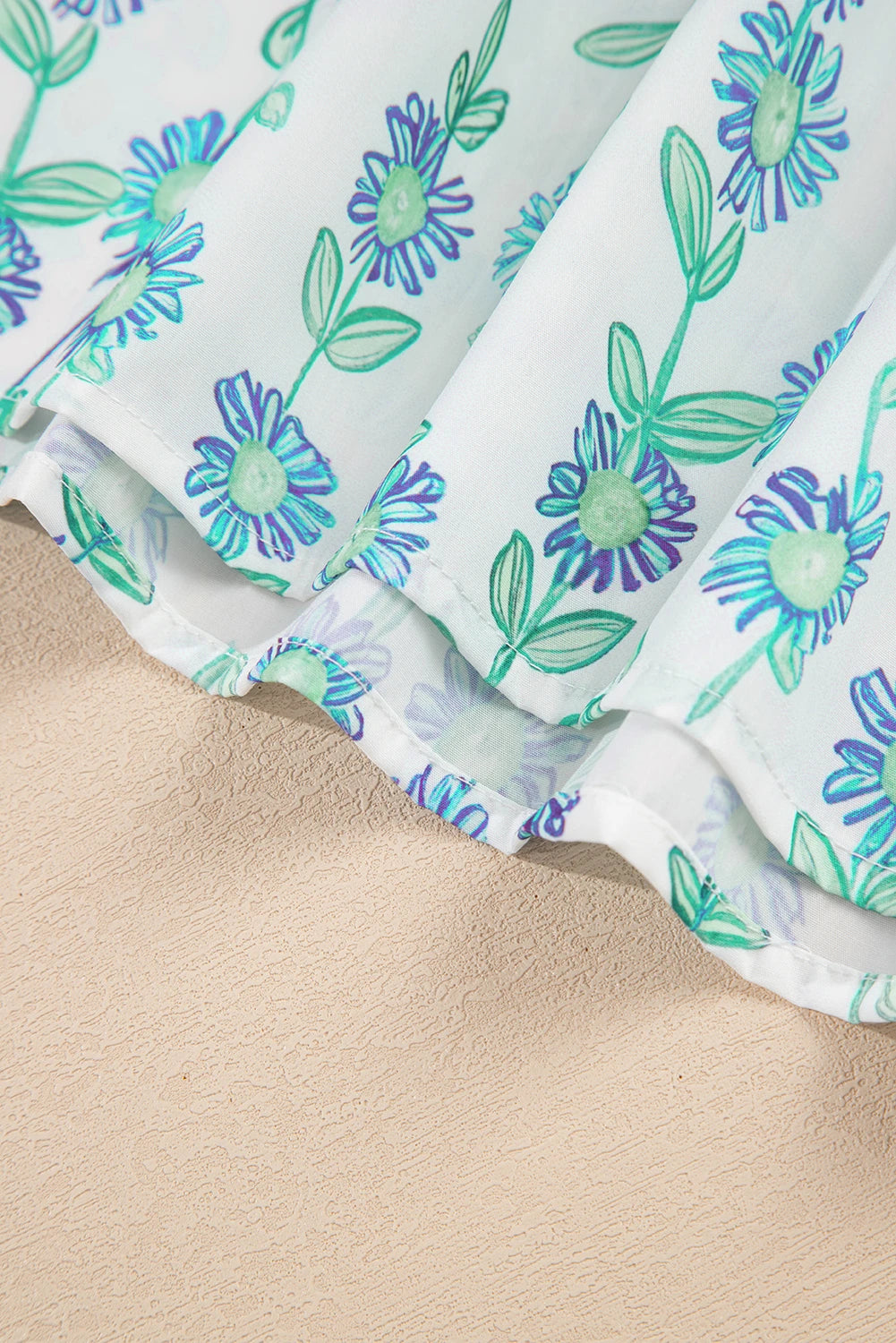 Floral Print Patchwork Flutter Sleeve Blouse | S-XL