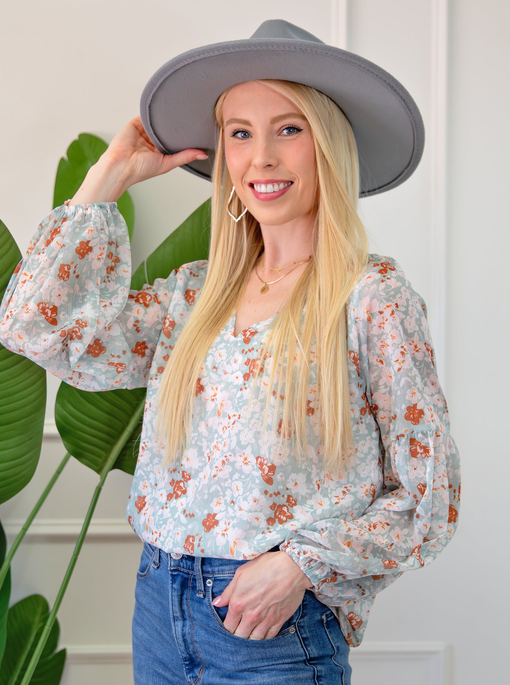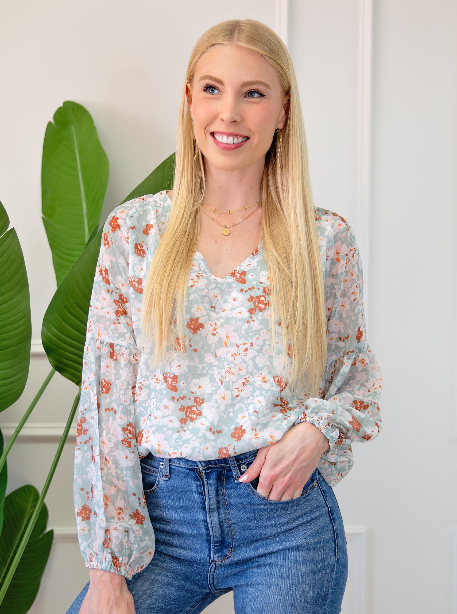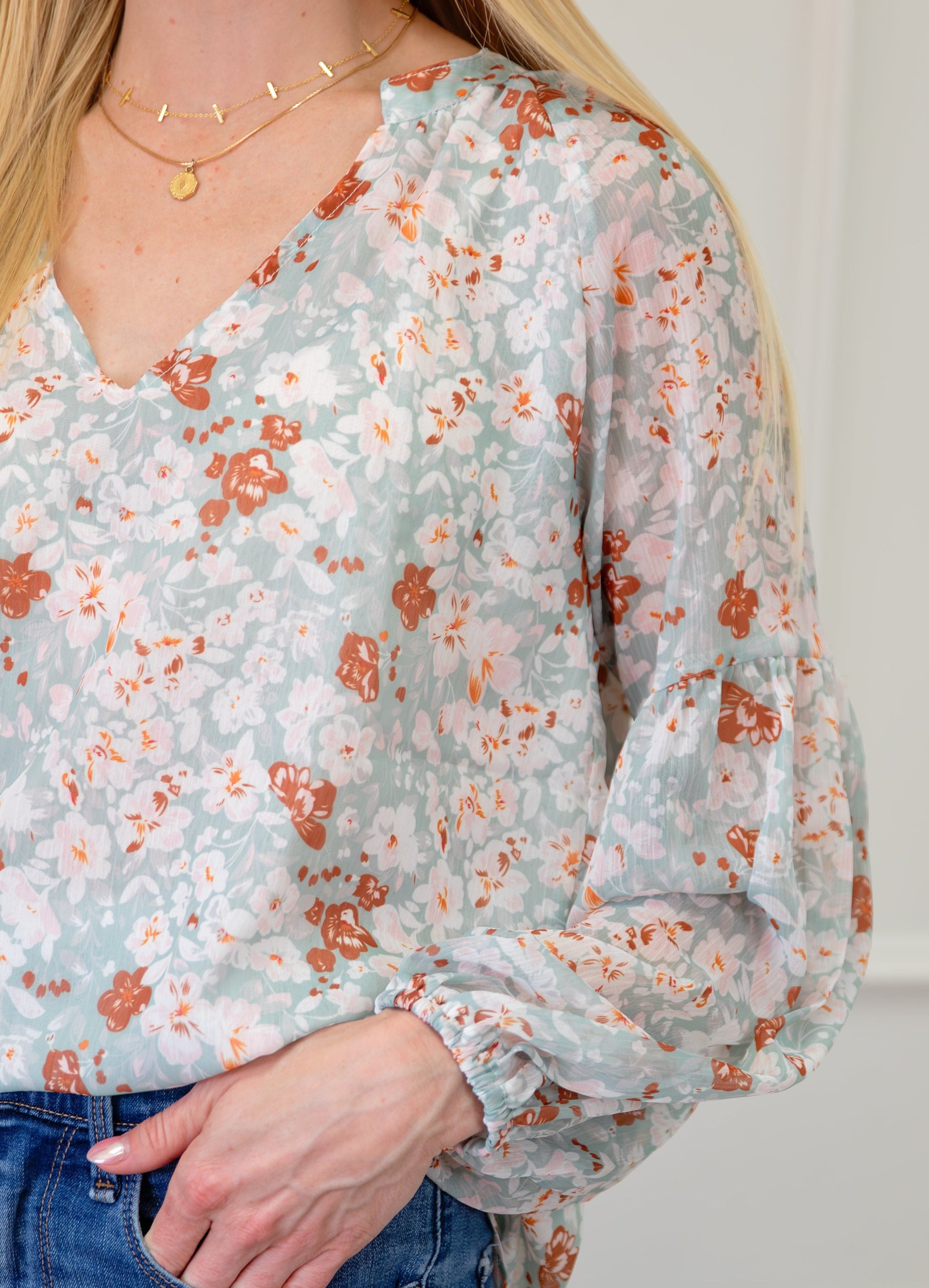 This blouse features long sleeves, a voluminous puff design, and a stylish V-neck. Floral prints, a timeless choice, add a touch of sophistication to your look and reflect your style. The regular fit complements various body types, enhancing your figure. Crafted from soft, skin-friendly, and lightweight material, it ensures a comfortable and pleasant wearing experience.