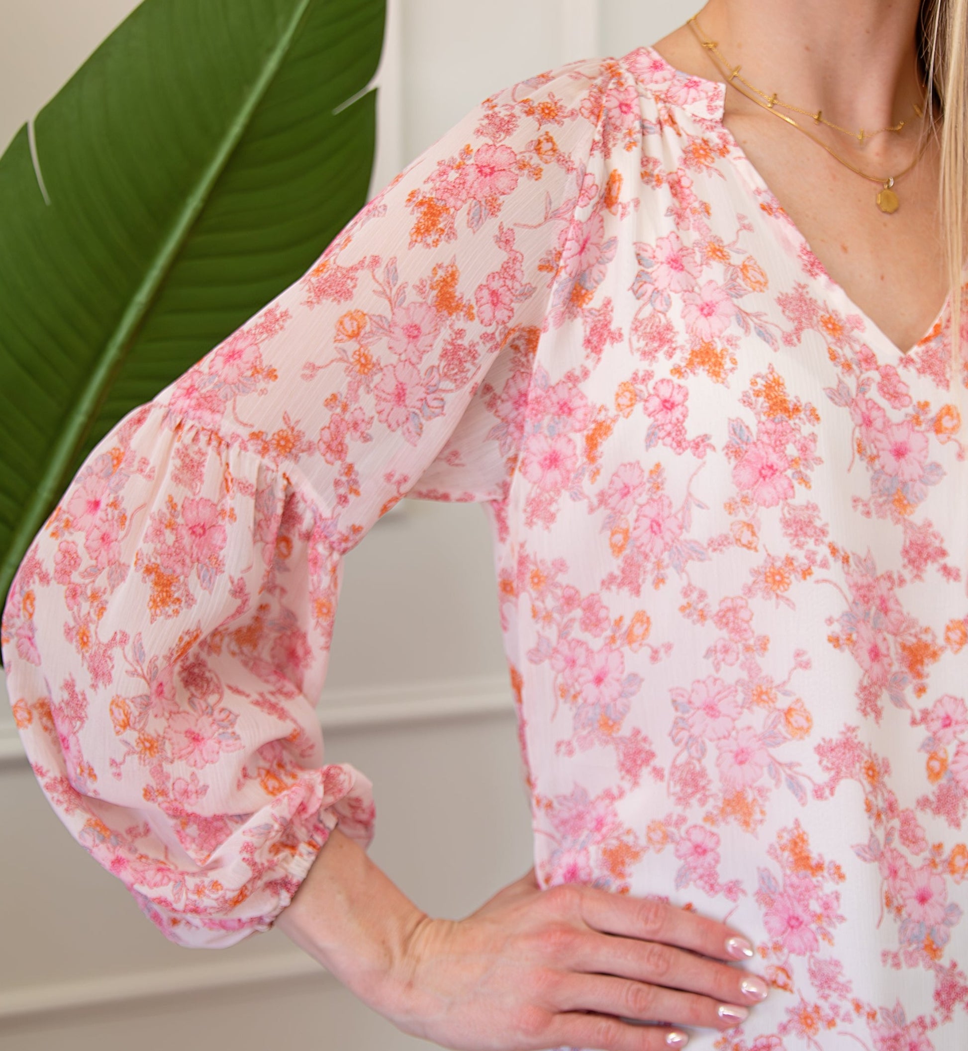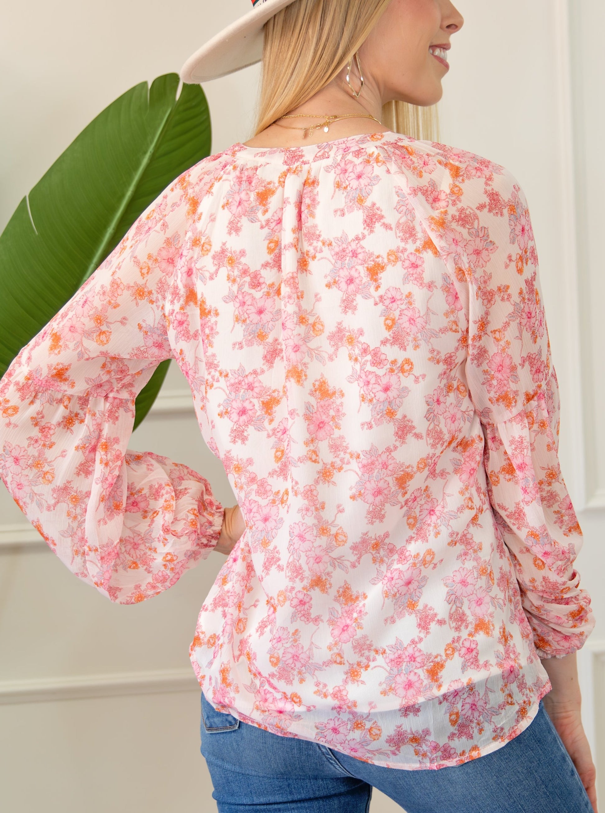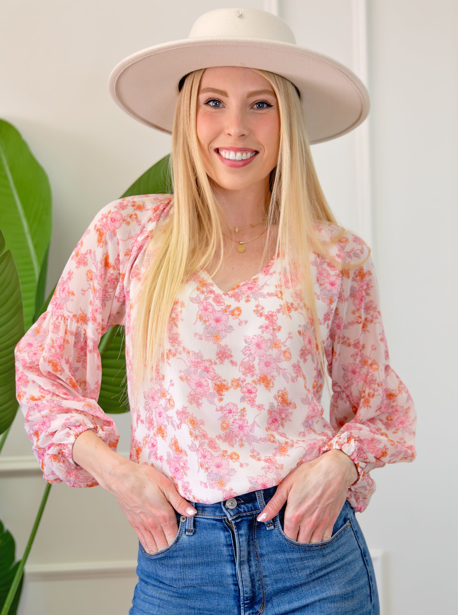 This blouse features long sleeves, a voluminous puff design, and a stylish V-neck. Floral prints, a timeless choice, add a touch of sophistication to your look and reflect your style. The regular fit complements various body types, enhancing your figure. Crafted from soft, skin-friendly, and lightweight material, it ensures a comfortable and pleasant wearing experience.
