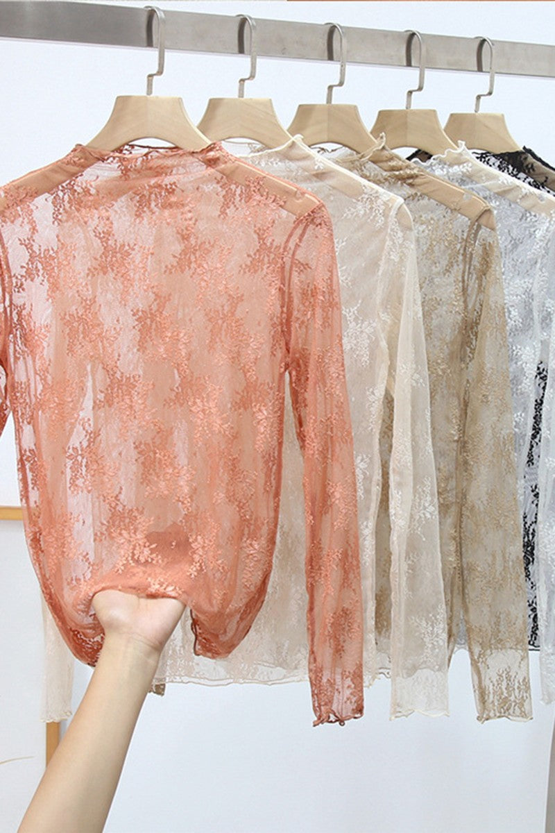 Add a touch of romance to any outfit with this gorgeous long sleeves top featuring a delicate floral lace pattern and a flattering mock neck. Perfect for layering under jumpsuits, tees, tanks, or even dresses. Whether you’re elevating a casual look or adding texture to a special outfit, this versatile piece is your new go-to for effortless style. Just right for that summer-to-fall transition.