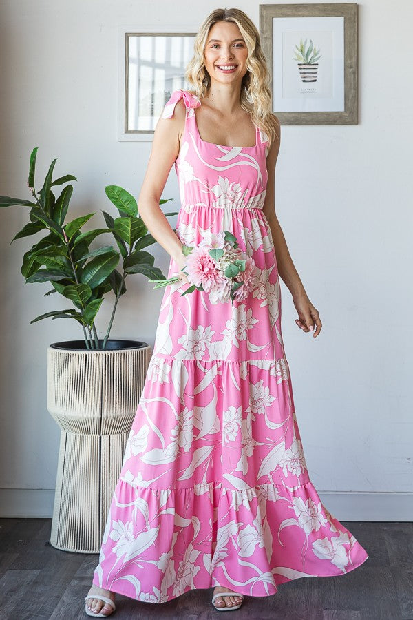 Effortless elegance for spring and summer! Our Flourish Tiered Maxi Dress features a flowy, relaxed fit, square neck, self-tie shoulder straps and tiered detailing for a dreamy, feminine look. Each piece is unique, making it truly one of a kind! Perfect for any occasion. Grab yours now! ✨