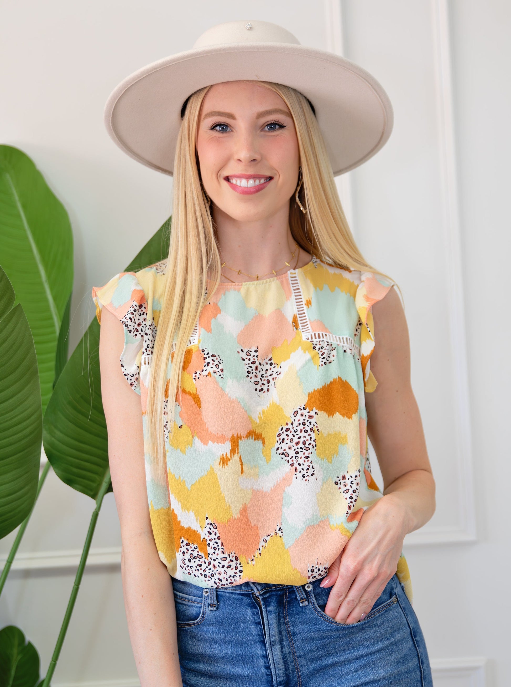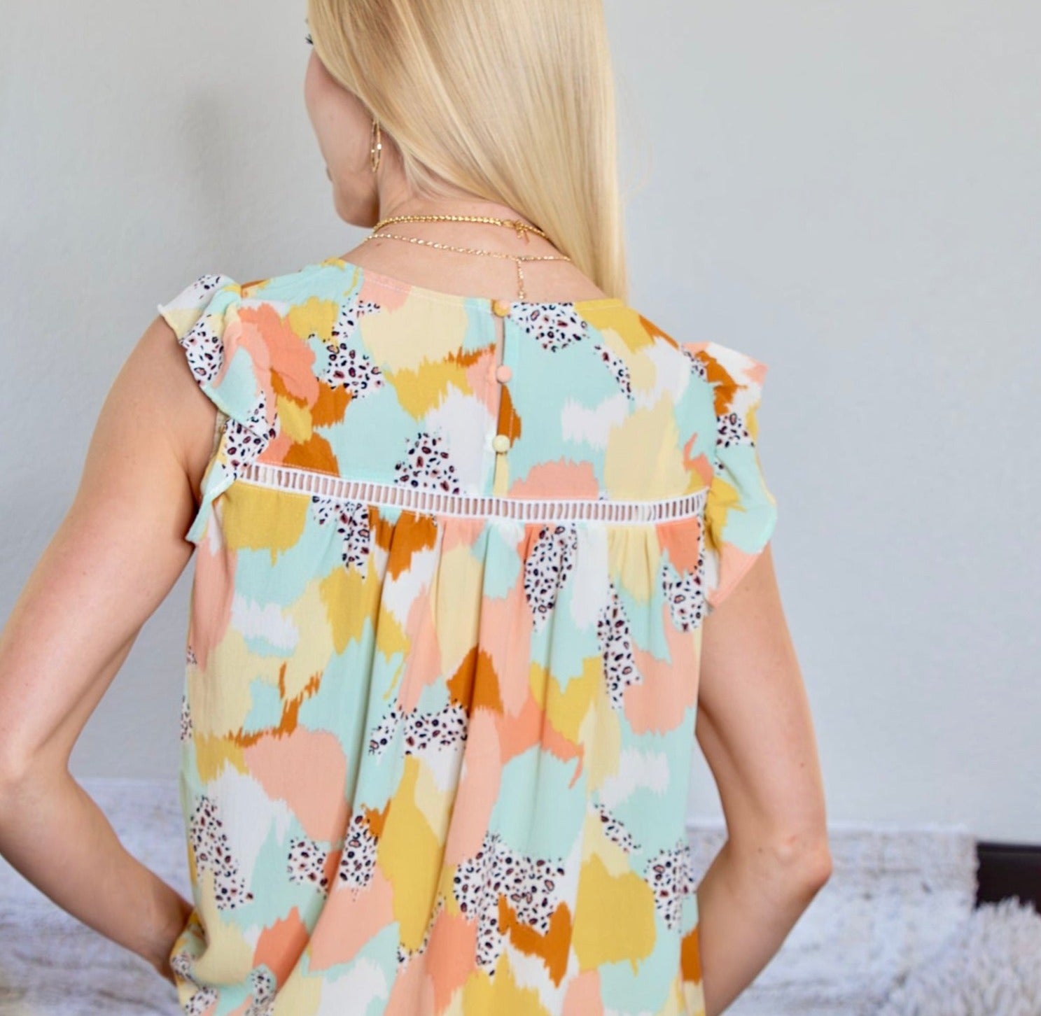 The vibrant abstract design on the women's tank captures attention, allowing wearers to make a statement in any gathering. The flutter tank style, known for its loose and flowy fit, is a favored option, especially among those who appreciate a relaxed top. Perfect for warm weather, this tank can be effortlessly matched with shorts, skirts, or jeans, creating a casual yet stylish ensemble. Its versatility shines through, making it suitable for a range of occasions, whether it's a day spent with friends, a laid-back work environment, or even a night out on the town.