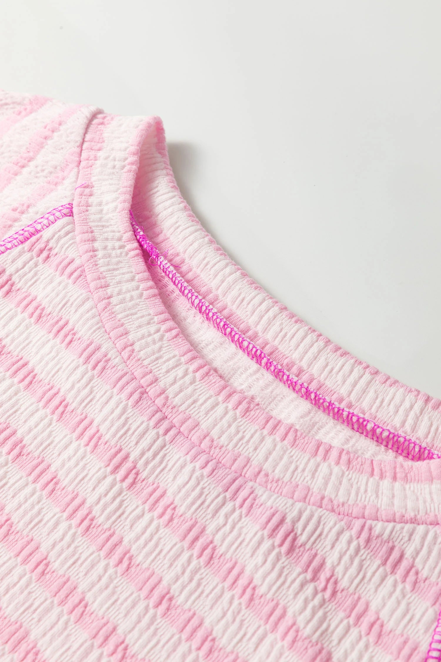This women’s top blends comfort and style effortlessly. Designed with a classic striped pattern and playful textured fabric, it adds interest while staying easy to wear. Featuring a round neckline, half sleeves, and a relaxed fit, it’s perfect for everyday comfort. Pair this loose tee with your favorite jeans, shorts, or skirts for a casual yet fashionable look.
