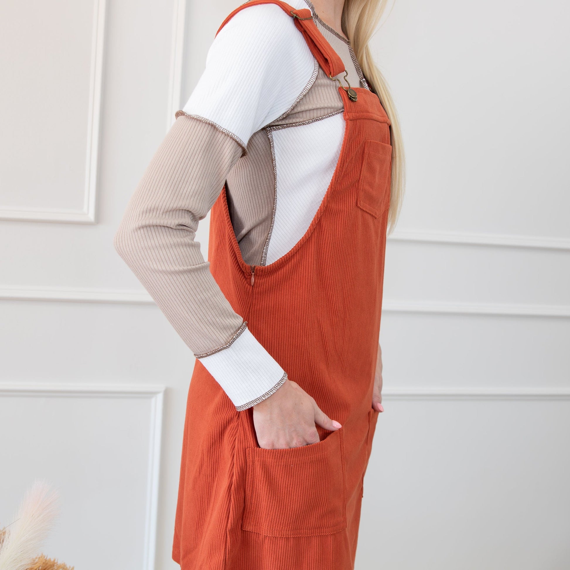 Embrace timeless style with our Front Pockets Corduroy Overall Dress! The durable corduroy fabric offers all-day comfort, while the front pockets add a touch of practicality to this practical piece. Get ready to turn heads with this stunning dress!