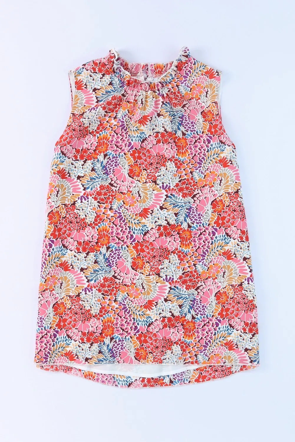 This stylish sleeveless top is ideal for relaxed summer outings. Its airy fabric and relaxed fit ensure breathability and comfort during warm days. The floral print design introduces a hint of femininity and vibrant color to any ensemble. Combining it with jeans or shorts achieves a fashionable and easygoing appearance. This top buttons up in the back and it is fully lined.