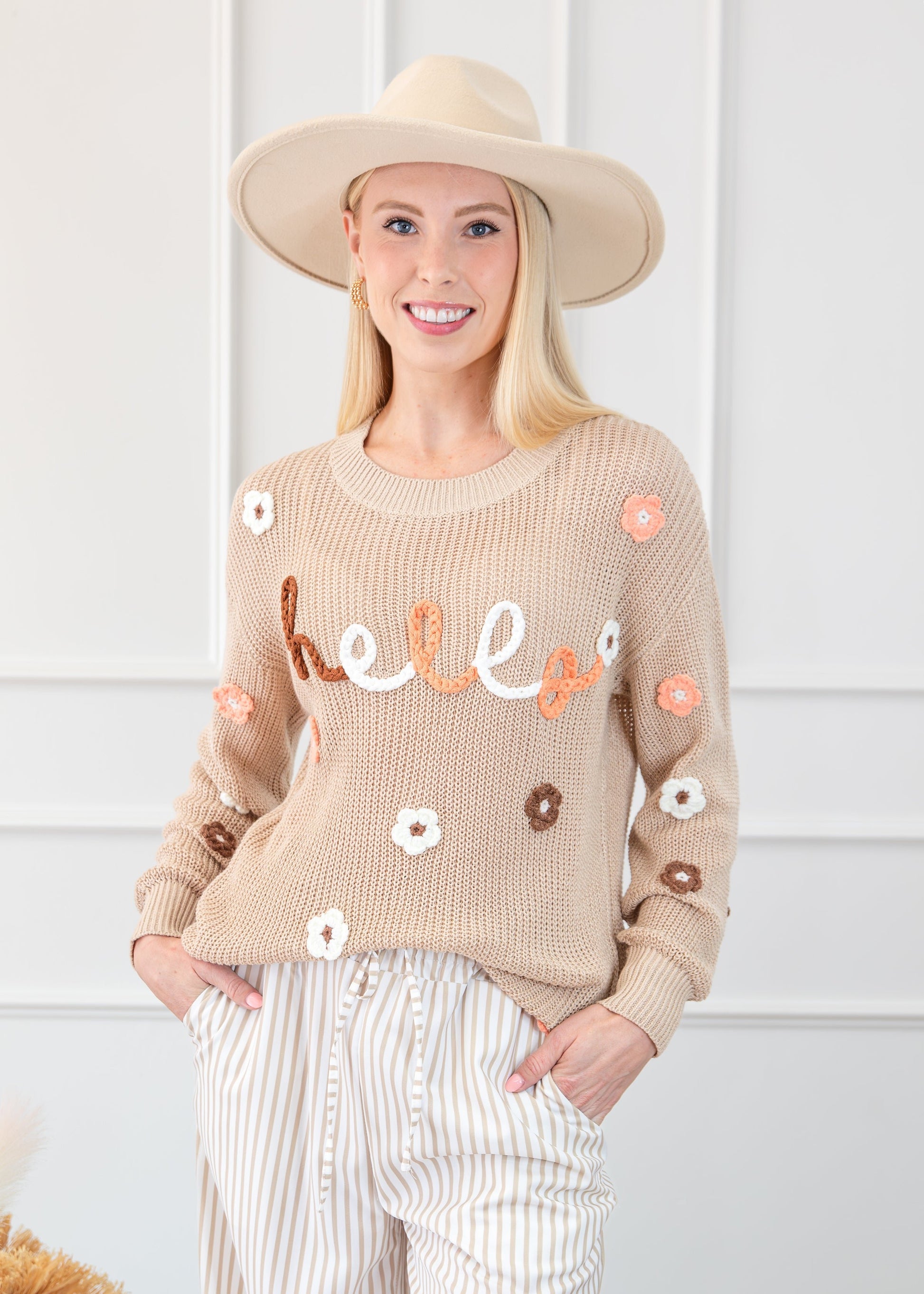 Experience the ultimate blend of comfort and style with our Hello Floral Embroidered Knit Loose Sweater. The lightweight and loose fit allows for effortless movement, while the unique embroidered design adds a feminine touch. This sweater creates a stunning longline silhouette and pairs perfectly with leggings or jeans for a chic and versatile look. Elevate your wardrobe with this must-have piece.
