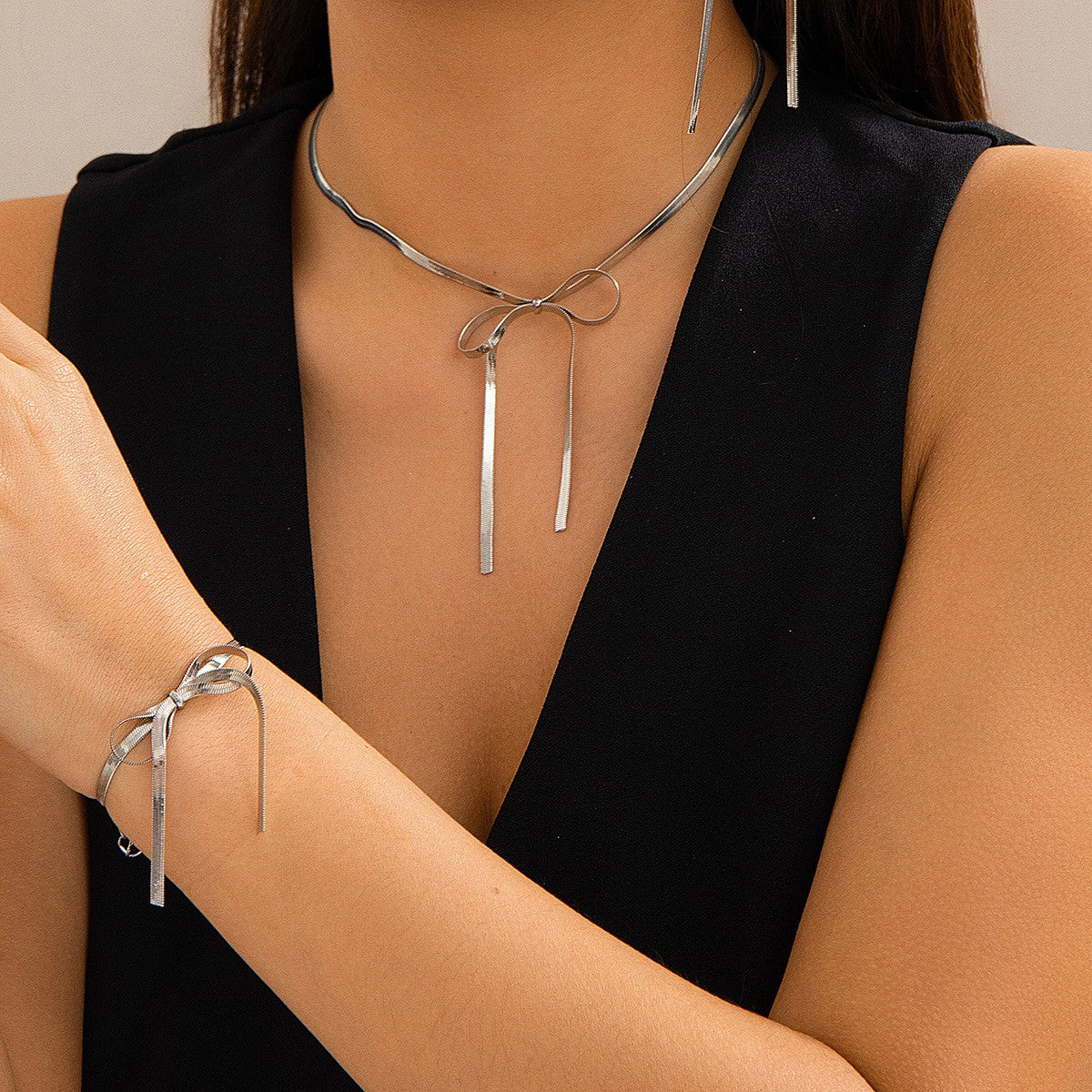 Herringbone Snake Chain Bow Necklace