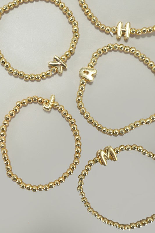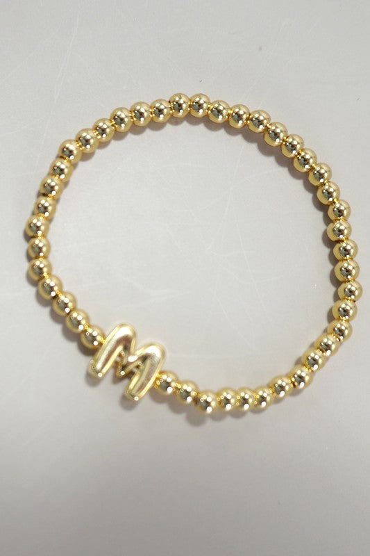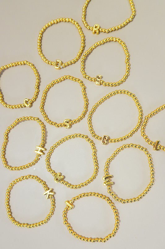 Personalize your style with our Initial Monogram Bubble Stretch Bead Bracelet. This elegant accessory features smooth, bubble-like initials on round circular beads for a unique touch. The stretch band provides a comfortable fit, and you can add your own monogram for a truly one-of-a-kind piece. Elevate your wardrobe with this charming bracelet.