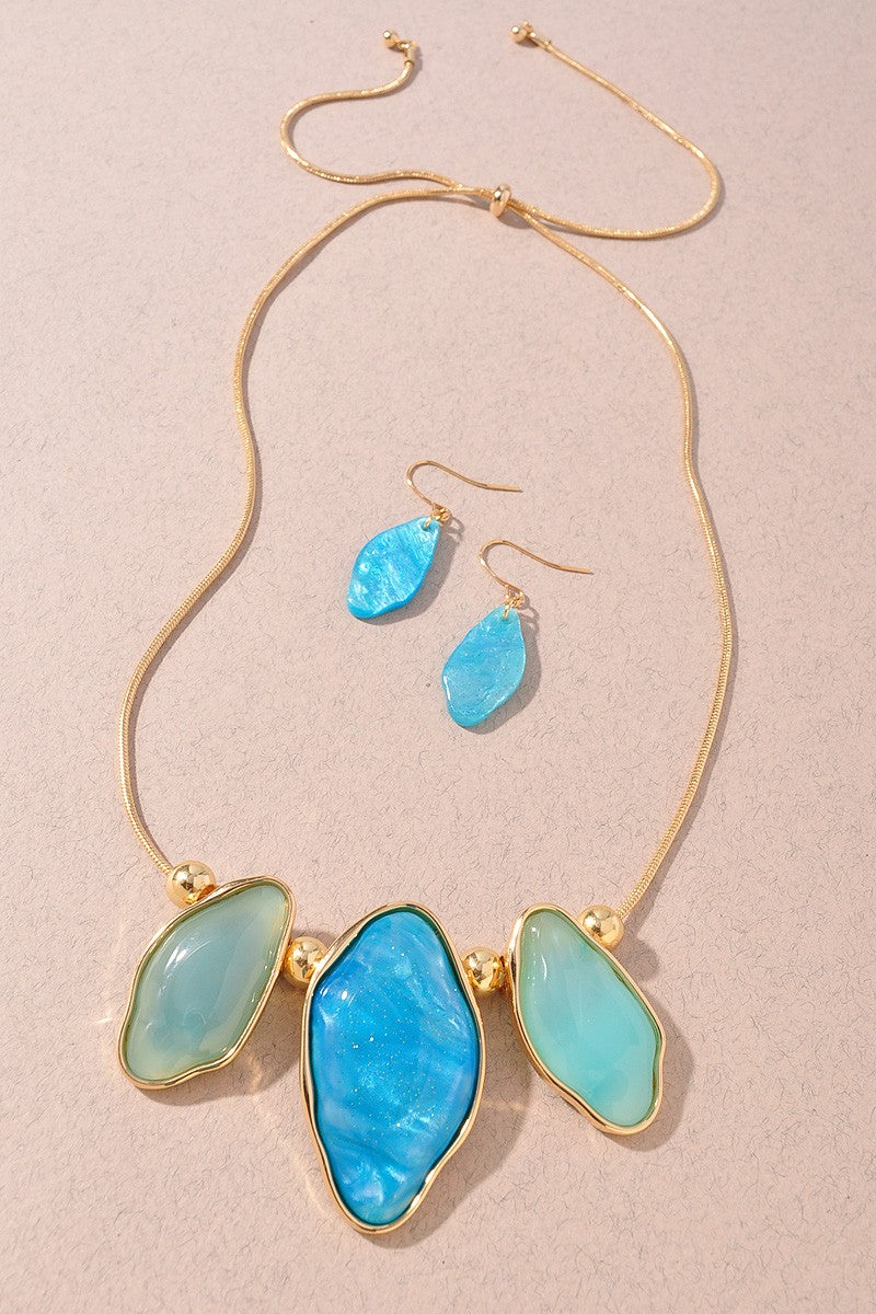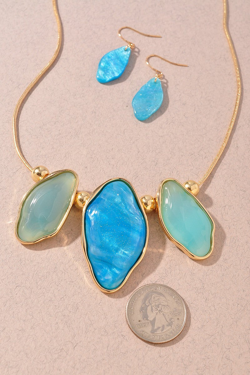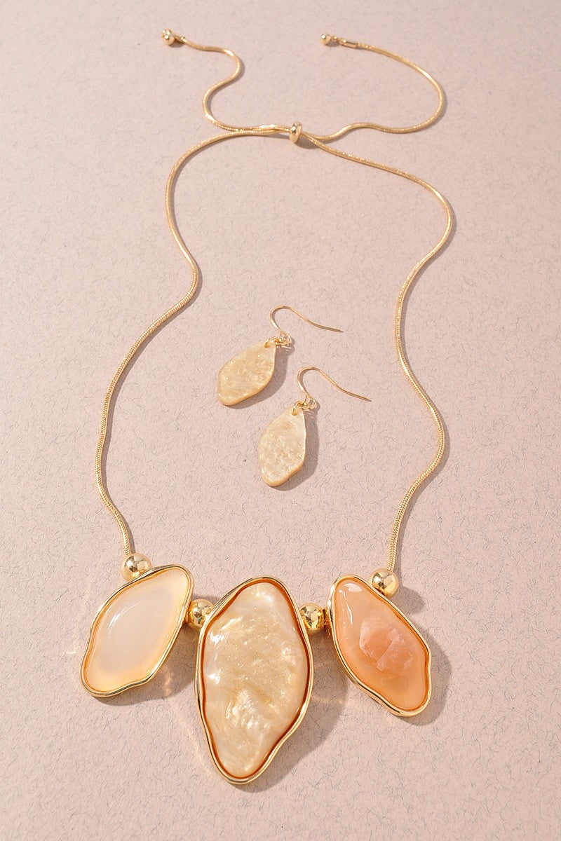 Irregular Resin Stone Pendant Necklace & Earrings Set
