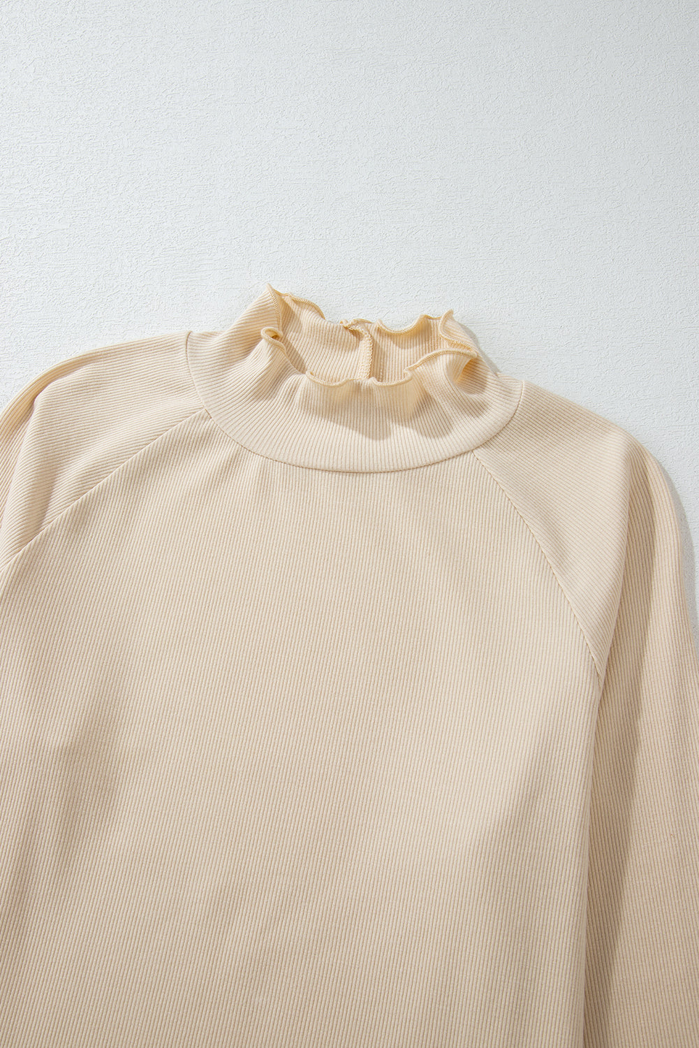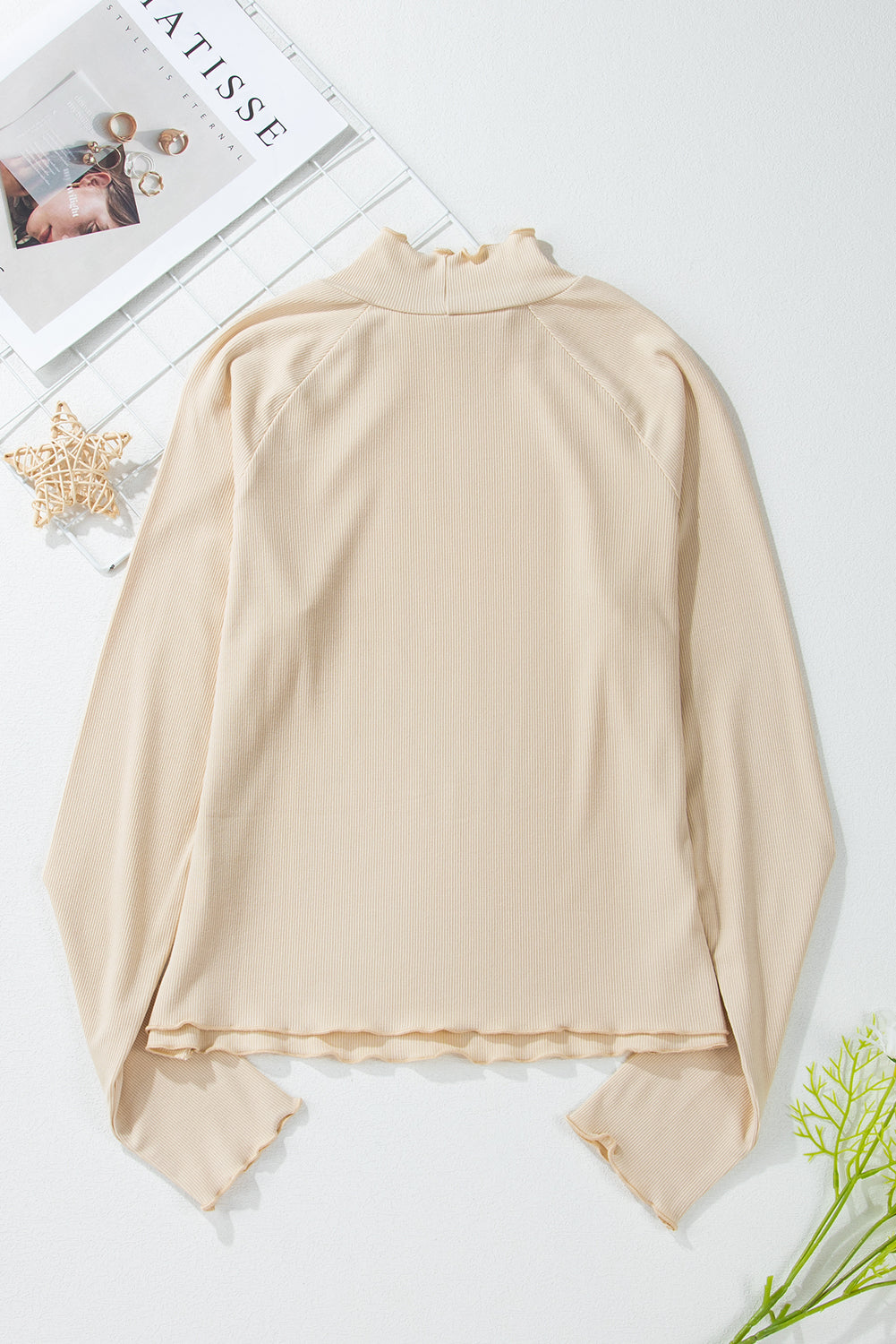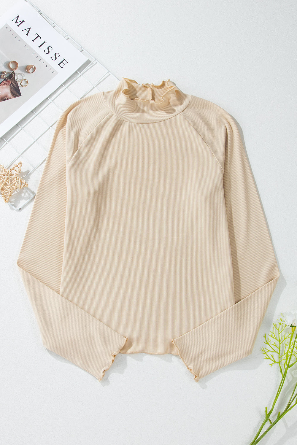 Knit Lettuce Trim High Neck Long Sleeve Top | S -2XL
