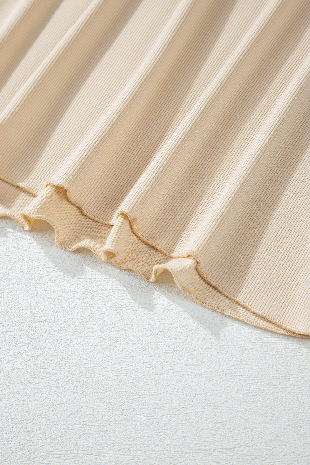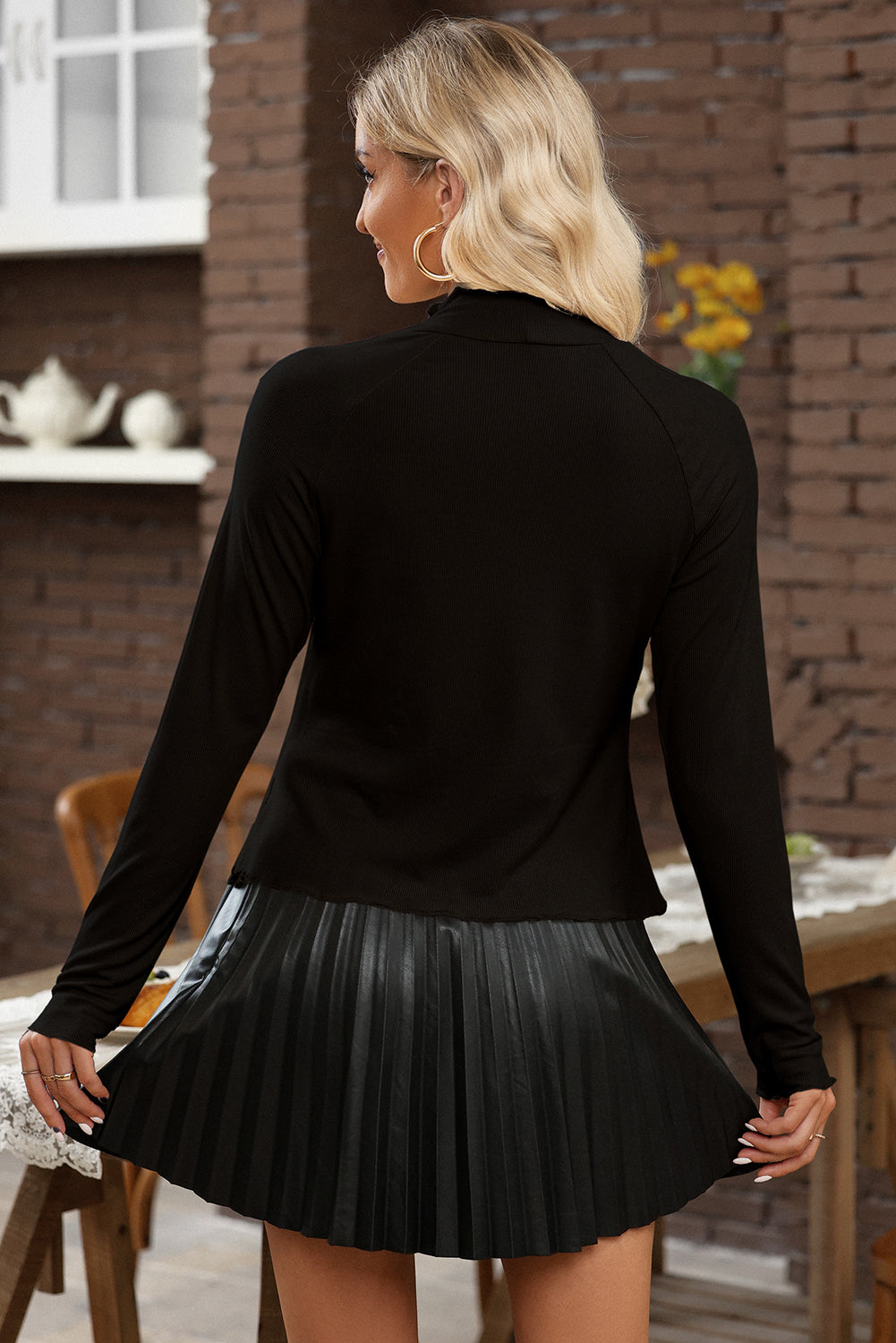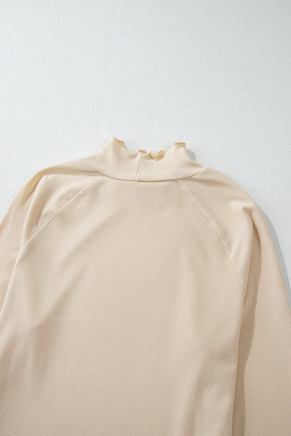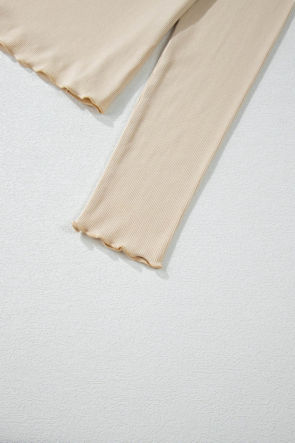 Knit Lettuce Trim High Neck Long Sleeve Top | S -2XL
