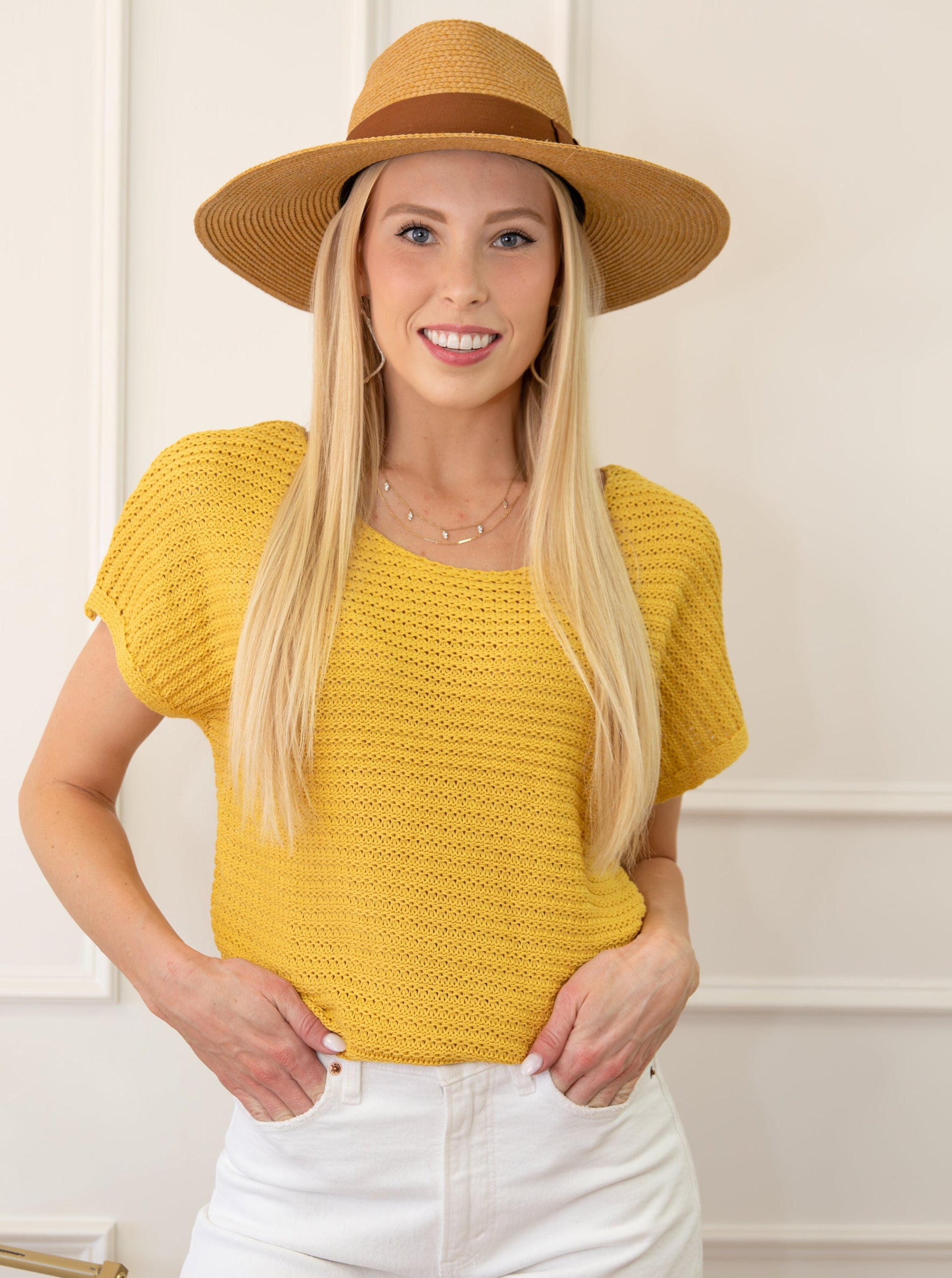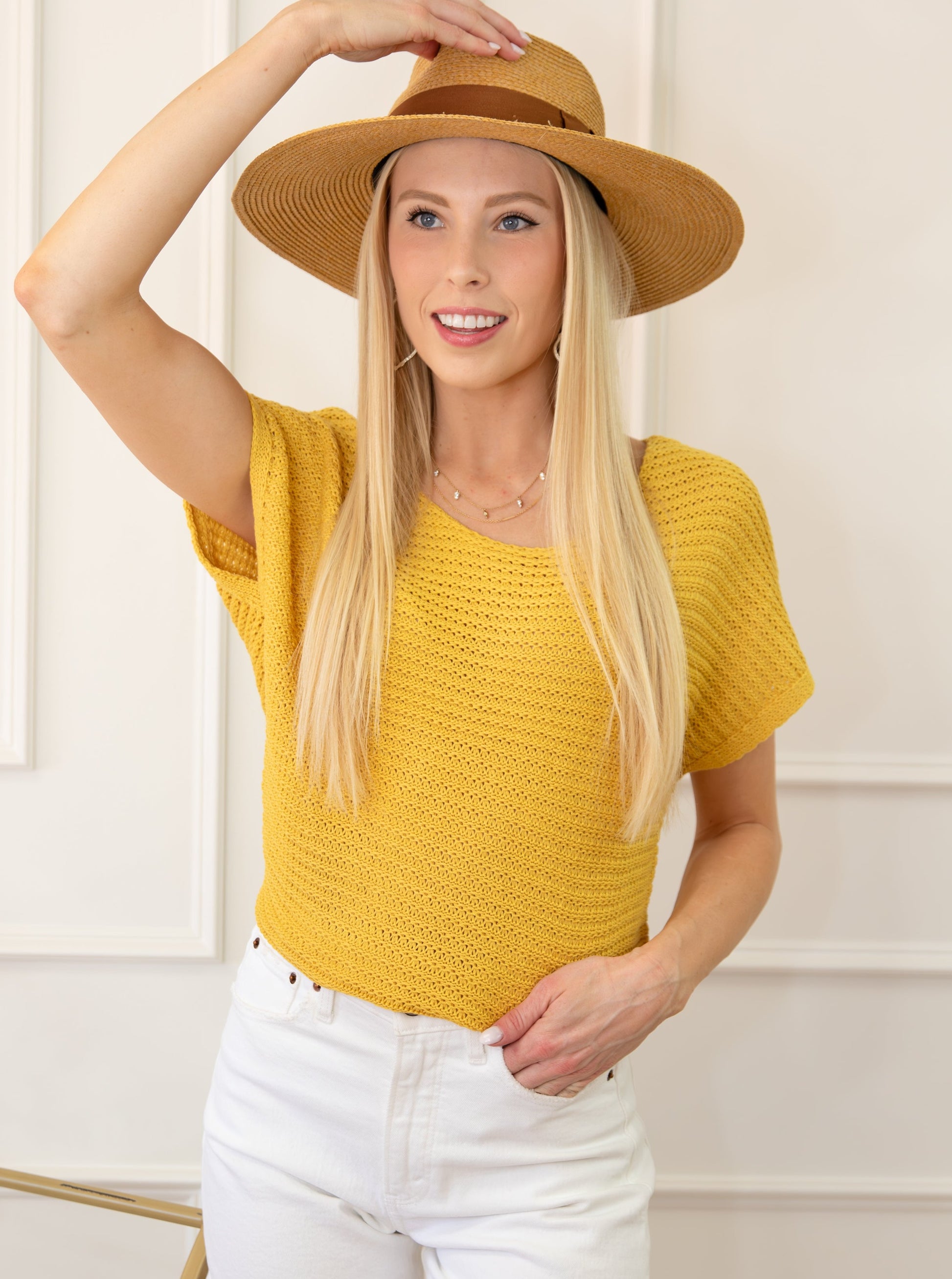 You'll look effortlessly stylish in this solid-color light knit top, thanks to its boat neck and dolman sleeves that exude a relaxed vibe.