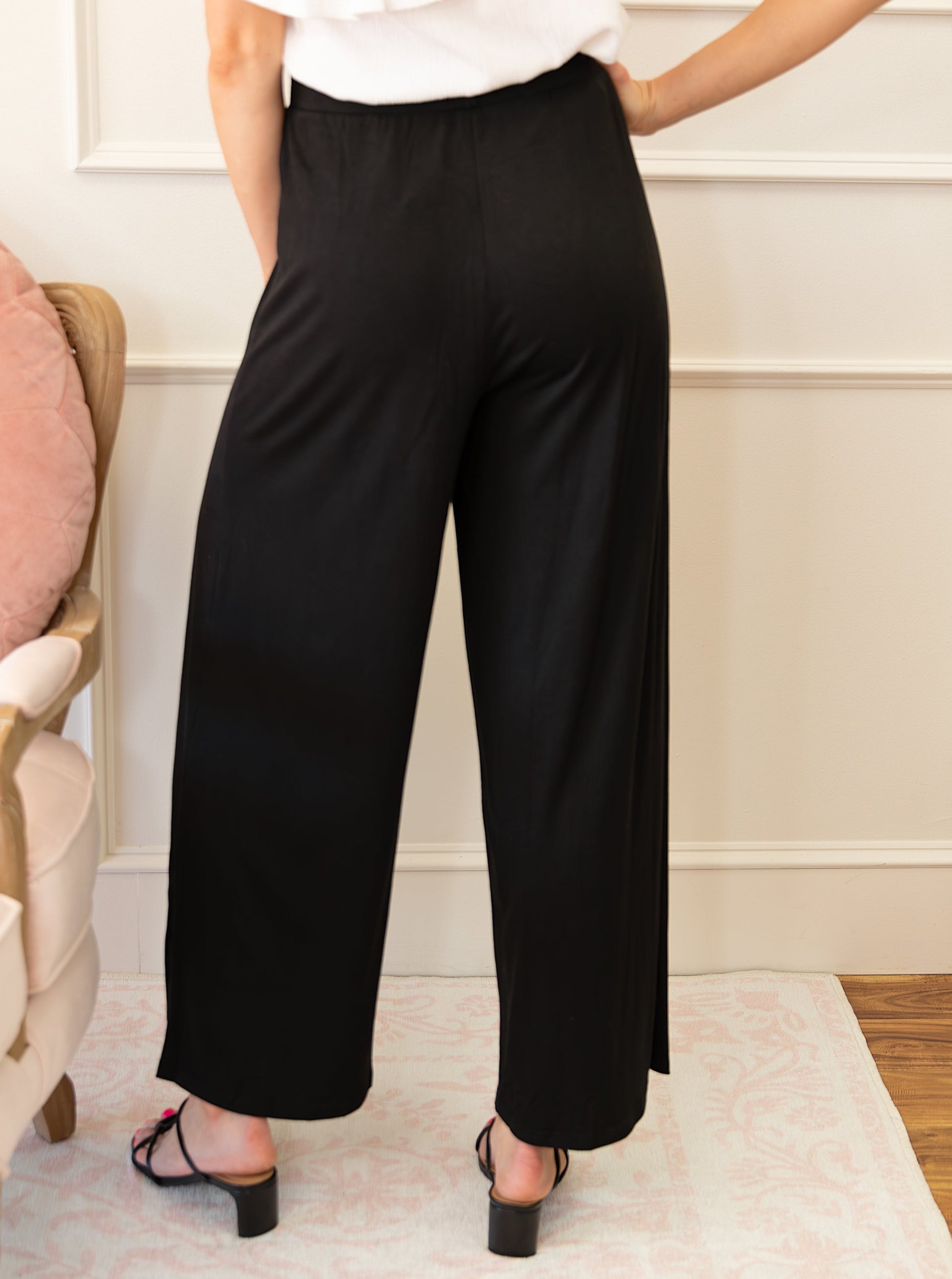 The Side Slit Wide Leg Mid Waist Pants offer the perfect fusion of comfort and style. Crafted from super-soft knit fabric, these pants feature a wide-leg silhouette with tulip hems that gracefully flutter as you walk. The elasticized high waist design ensures a comfortable fit and easy pull-on style. With stylish side slits, these wide-leg pants are an ideal choice for showcasing your legs with a touch of allure. pair with our "One Shoulder Ruffle Tank" for a date night :)