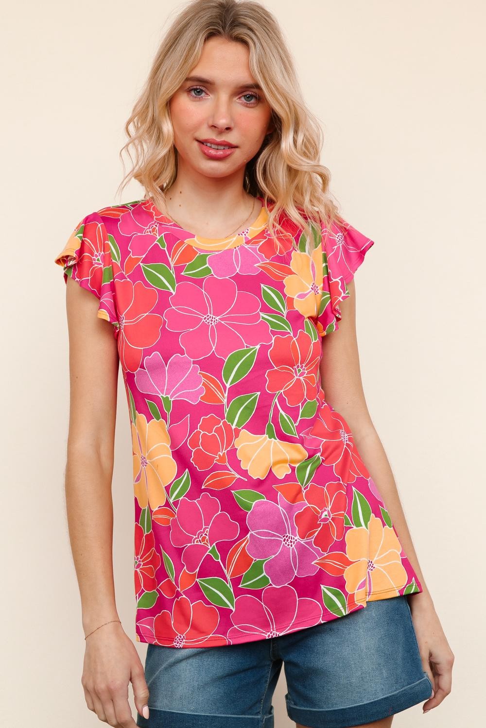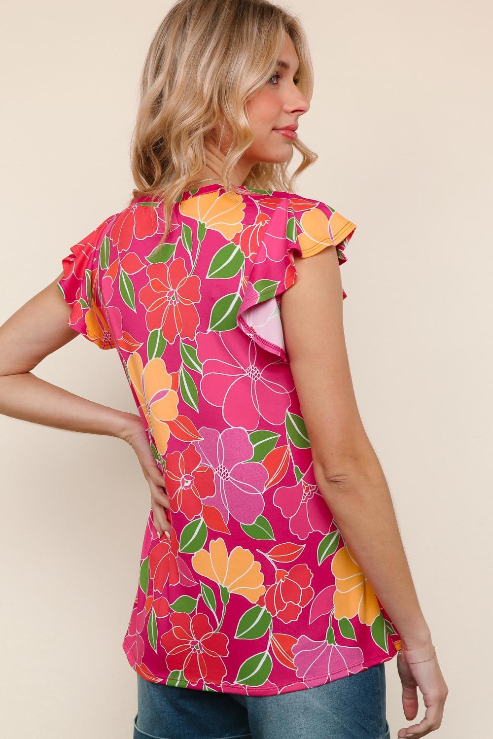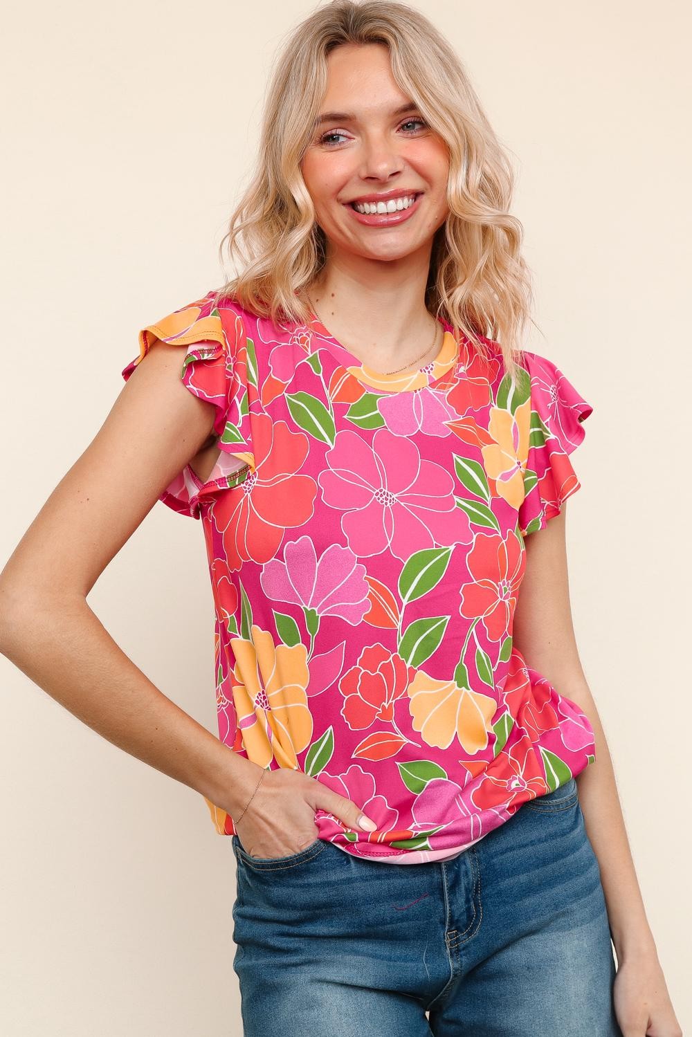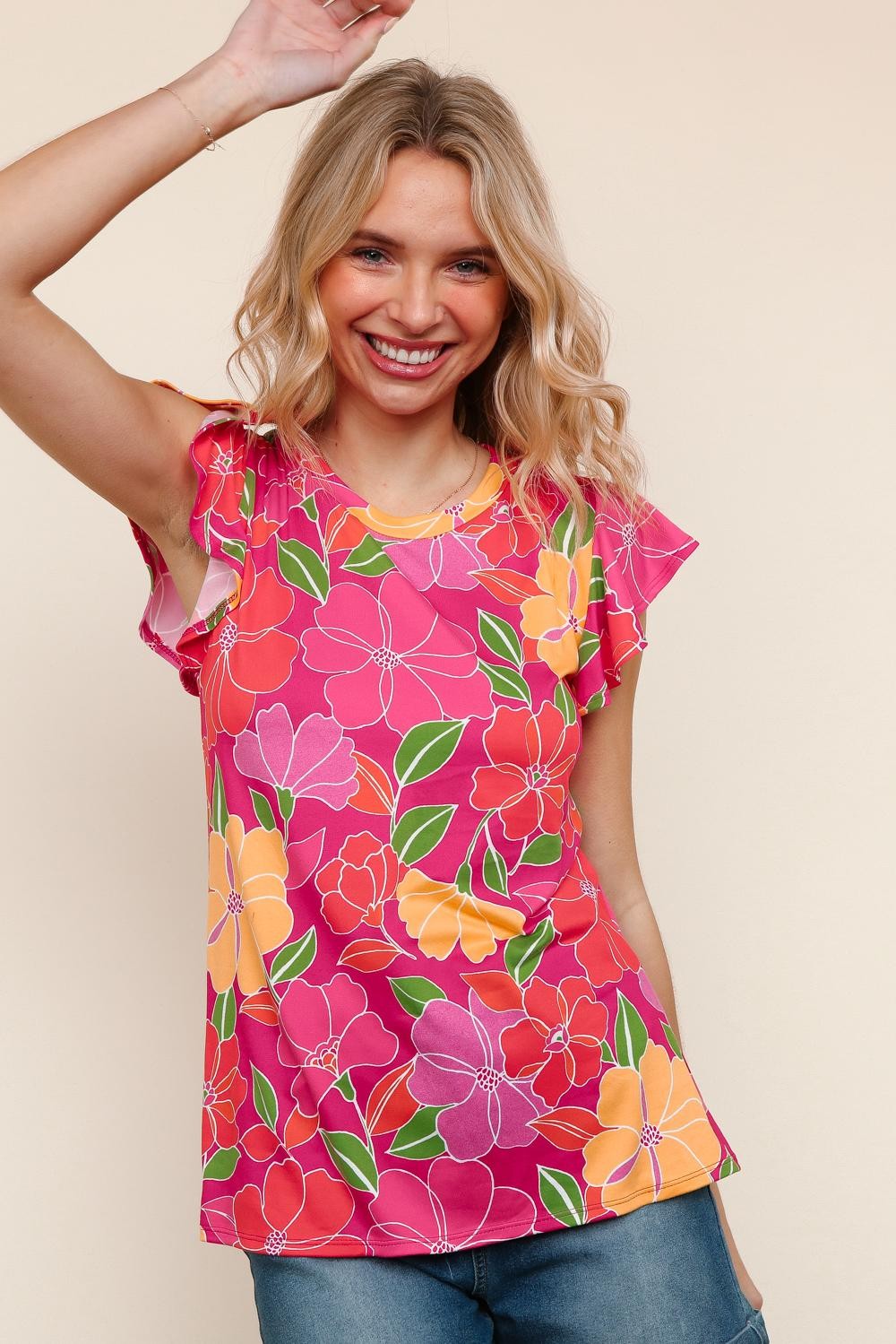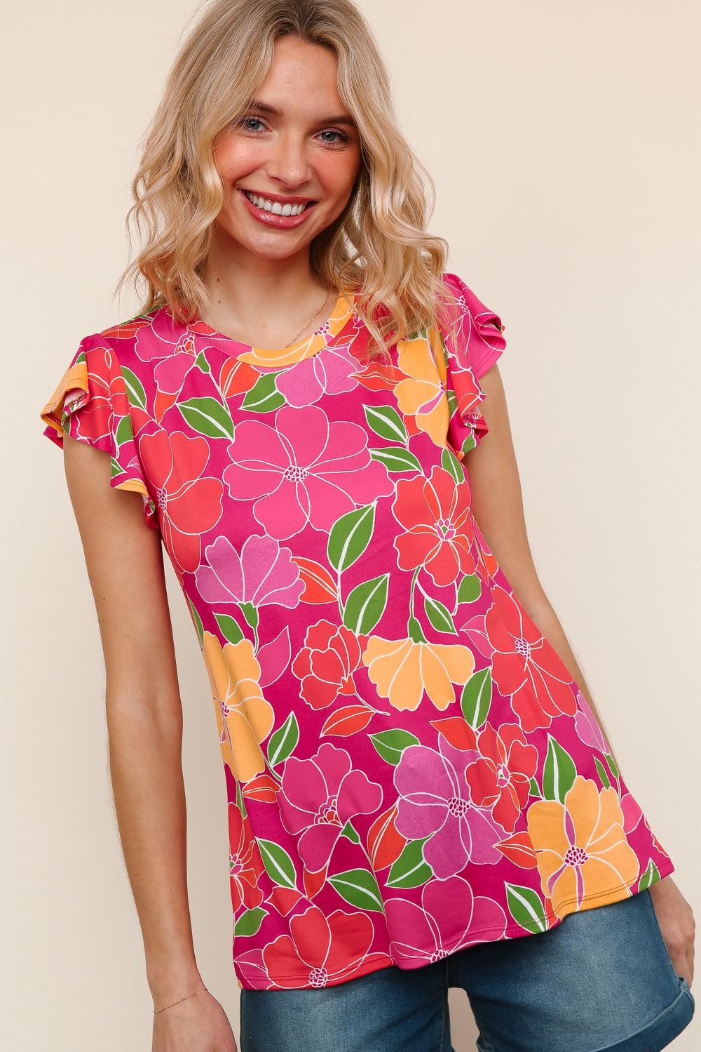 Paradise Floral Ruffle Sleeve top| S-3X