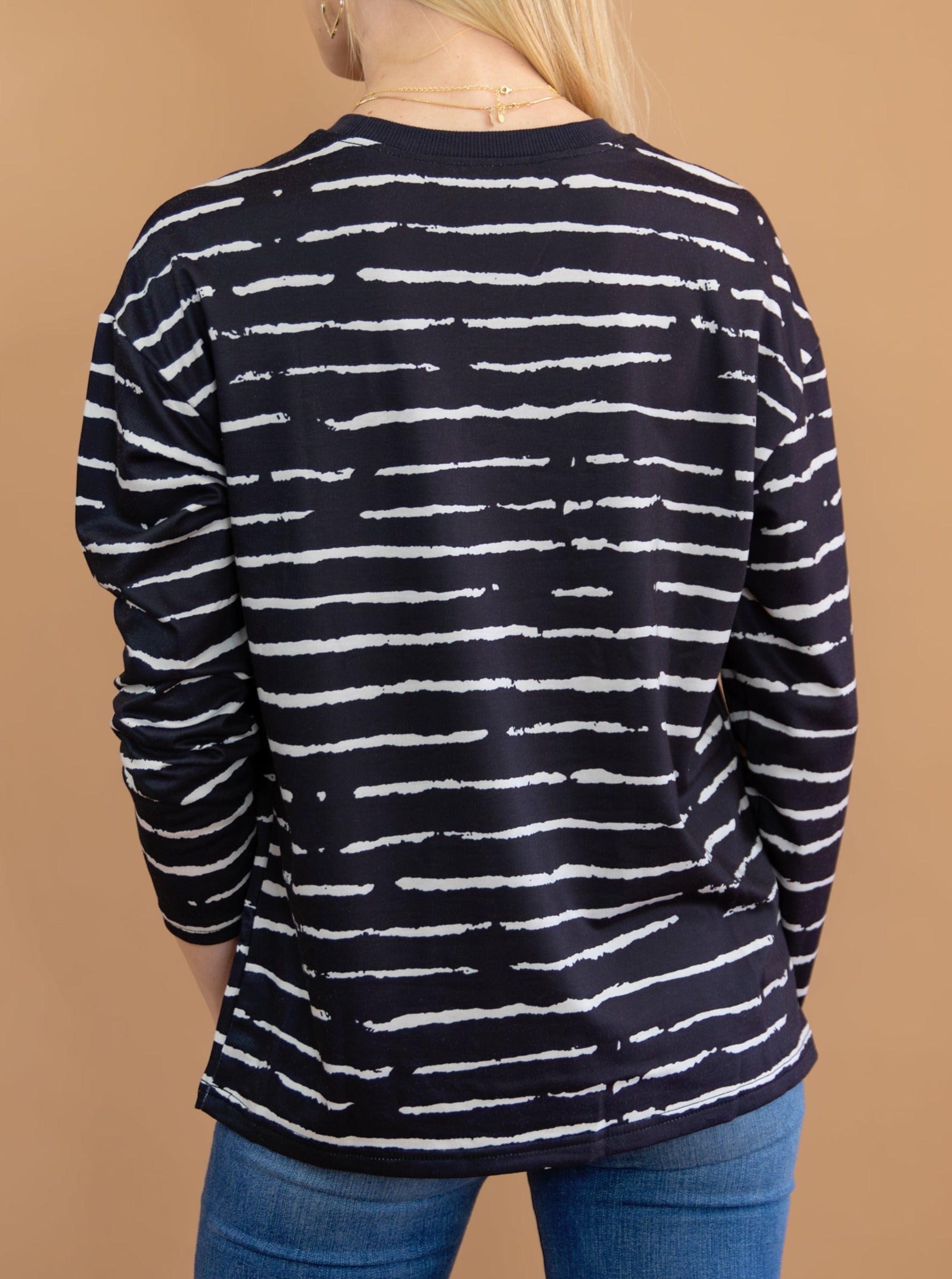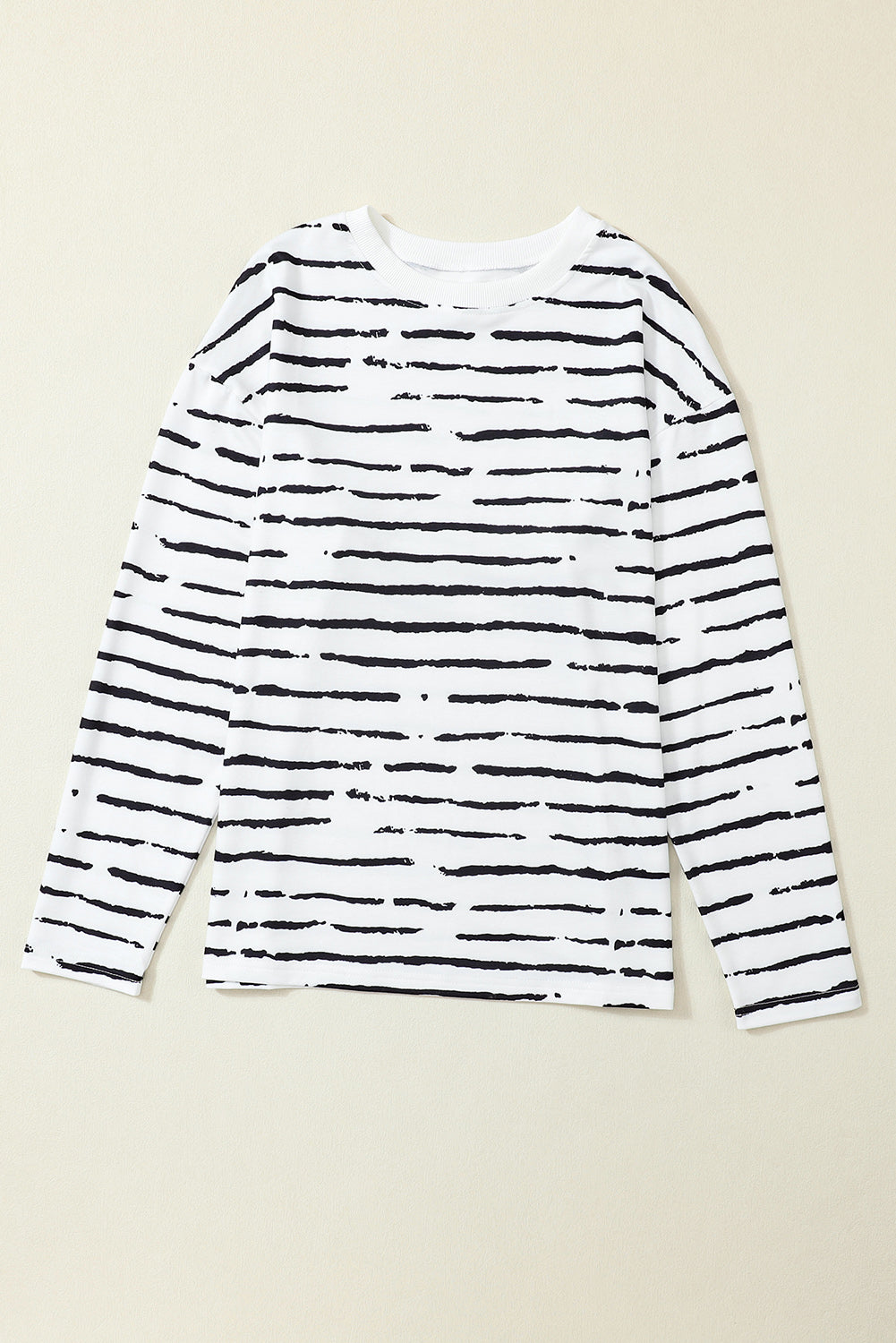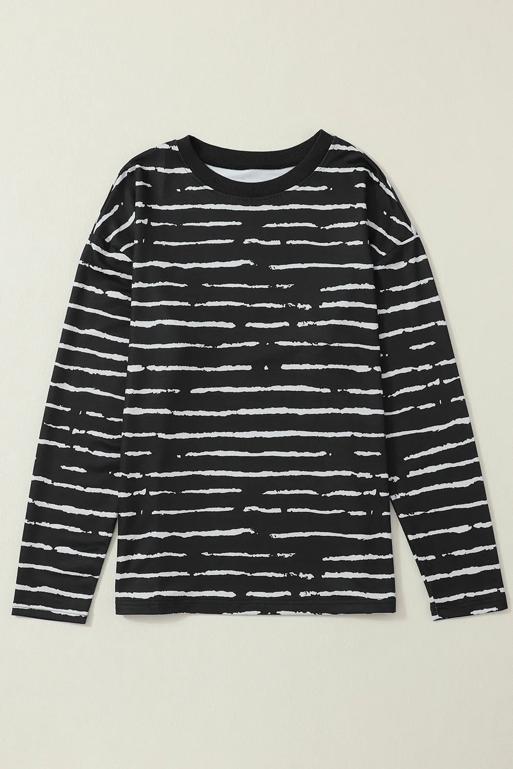 Combine retro allure with contemporary flair in this laid-back top, adorned with a timeless striped print. Effortlessly chic, the top showcases a flattering shift style designed to complement any body shape. Embrace both comfort and style with its relaxed fit and long sleeves. Crafted from high-quality fabric, this top ensures comfortable wear throughout the day.