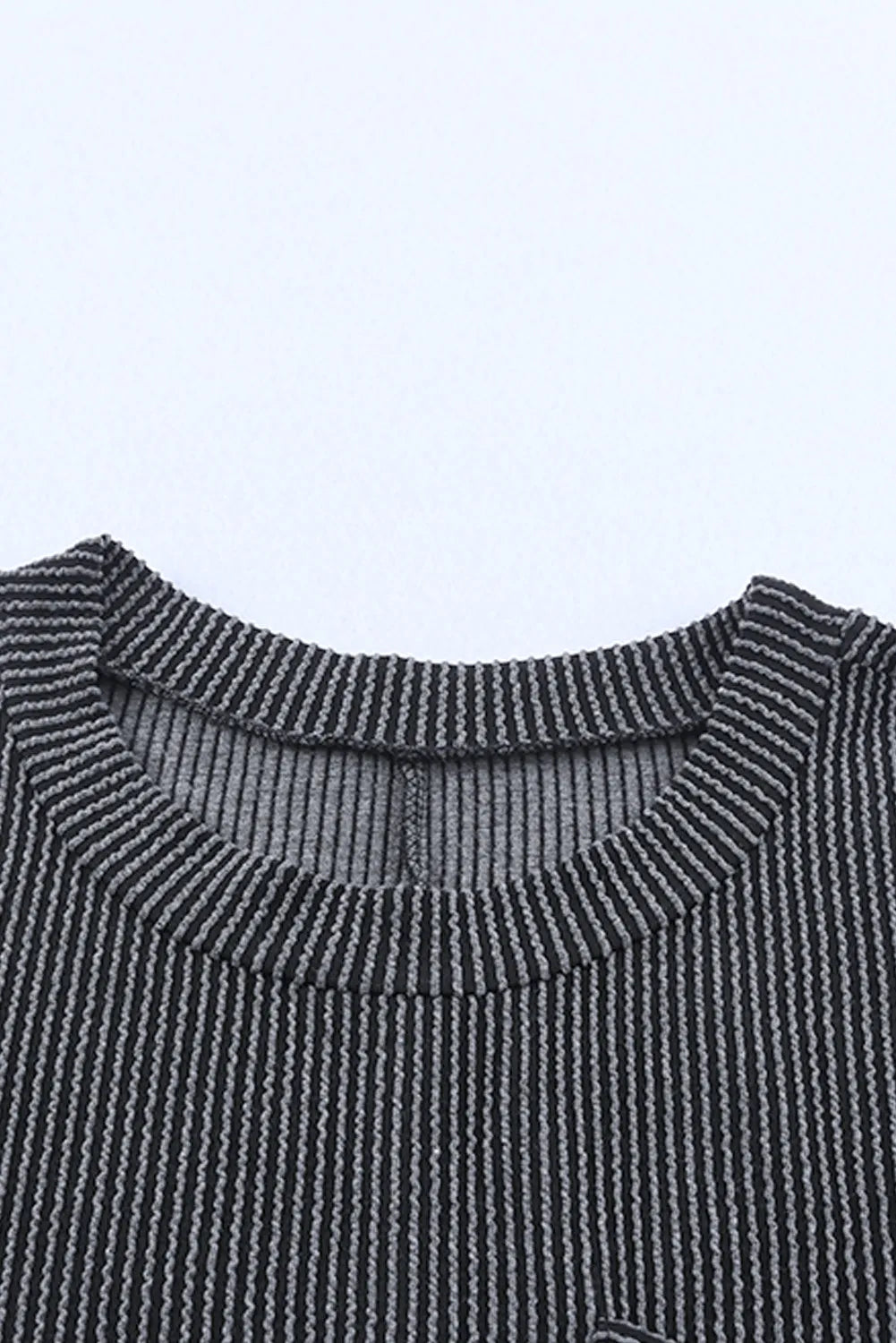 Ribbed Pocket Short Sleeve Midi Shirt Dress