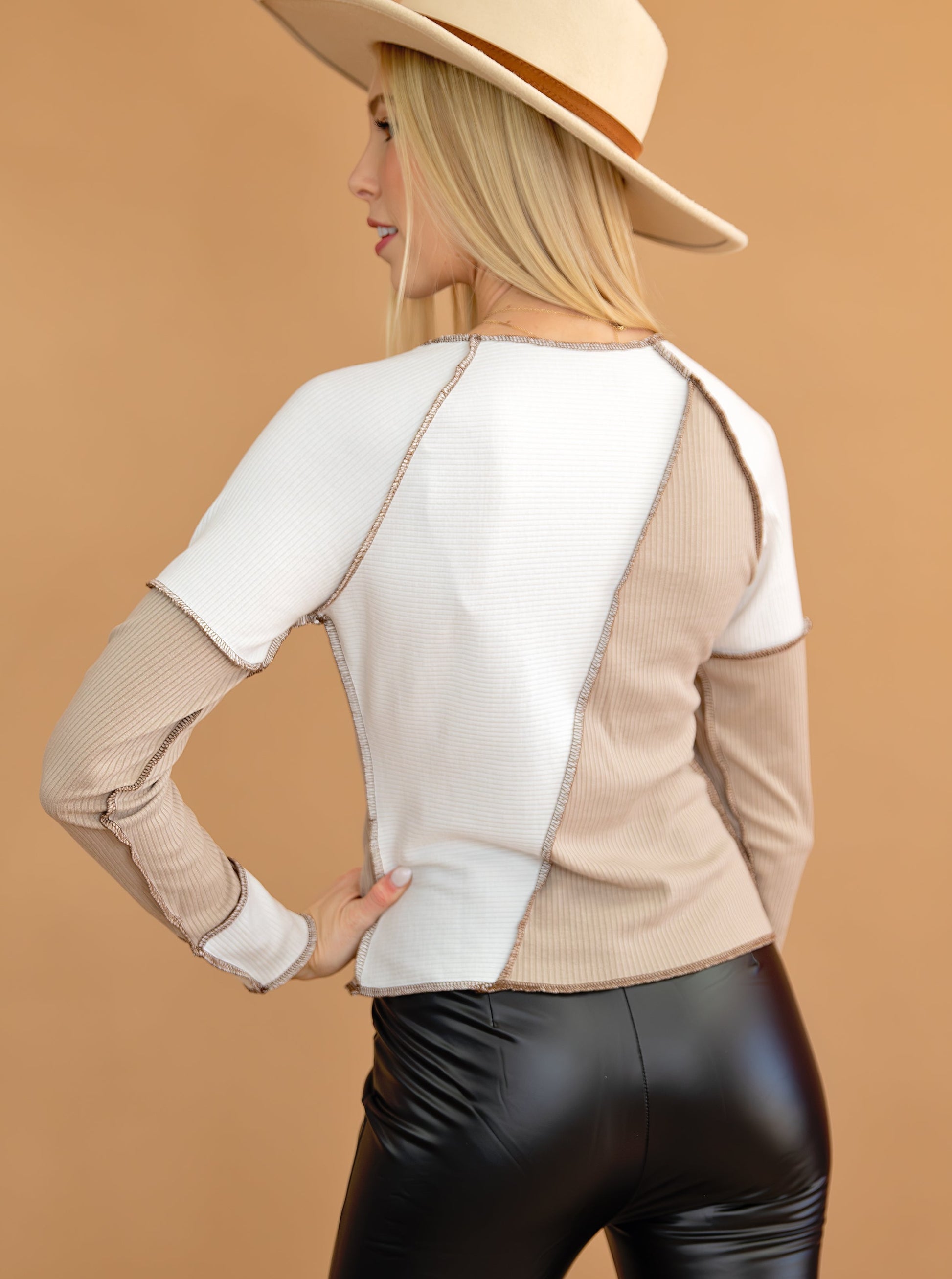 Seaming Trim Rib Knit Top