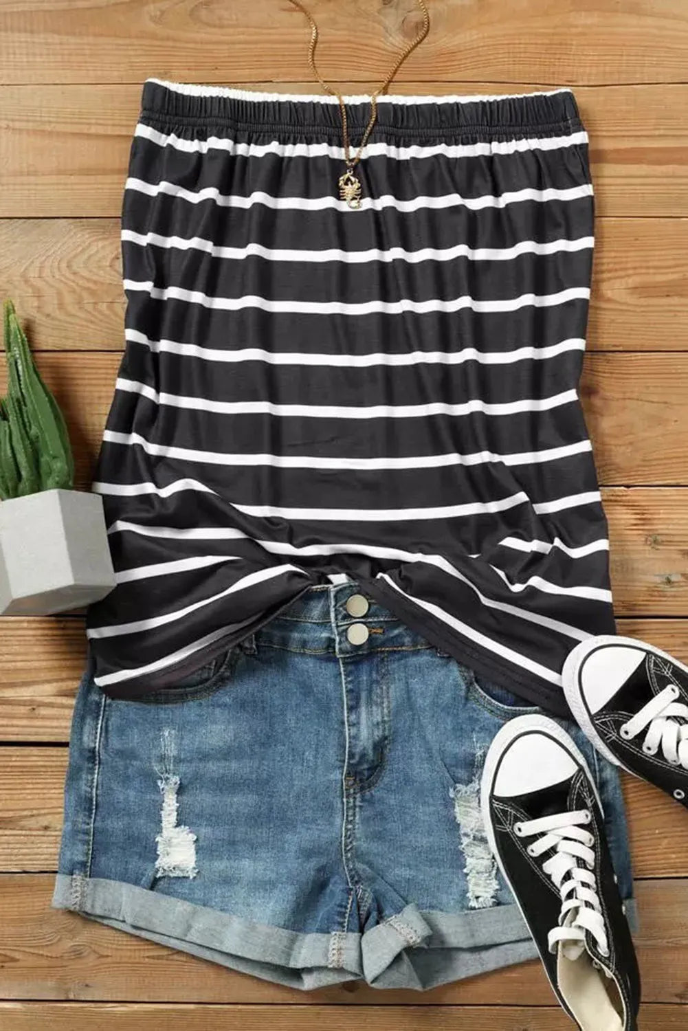 This tank top is renowned for its timeless striped pattern. The strapless bandeau style is alluring and ideal for showcasing attractive collarbones and shoulder curves. The elastic and adjustable straight neckline adds to the versatility. The tank's fabric is soft and breathable, ensuring a cool and comfortable wearing experience.