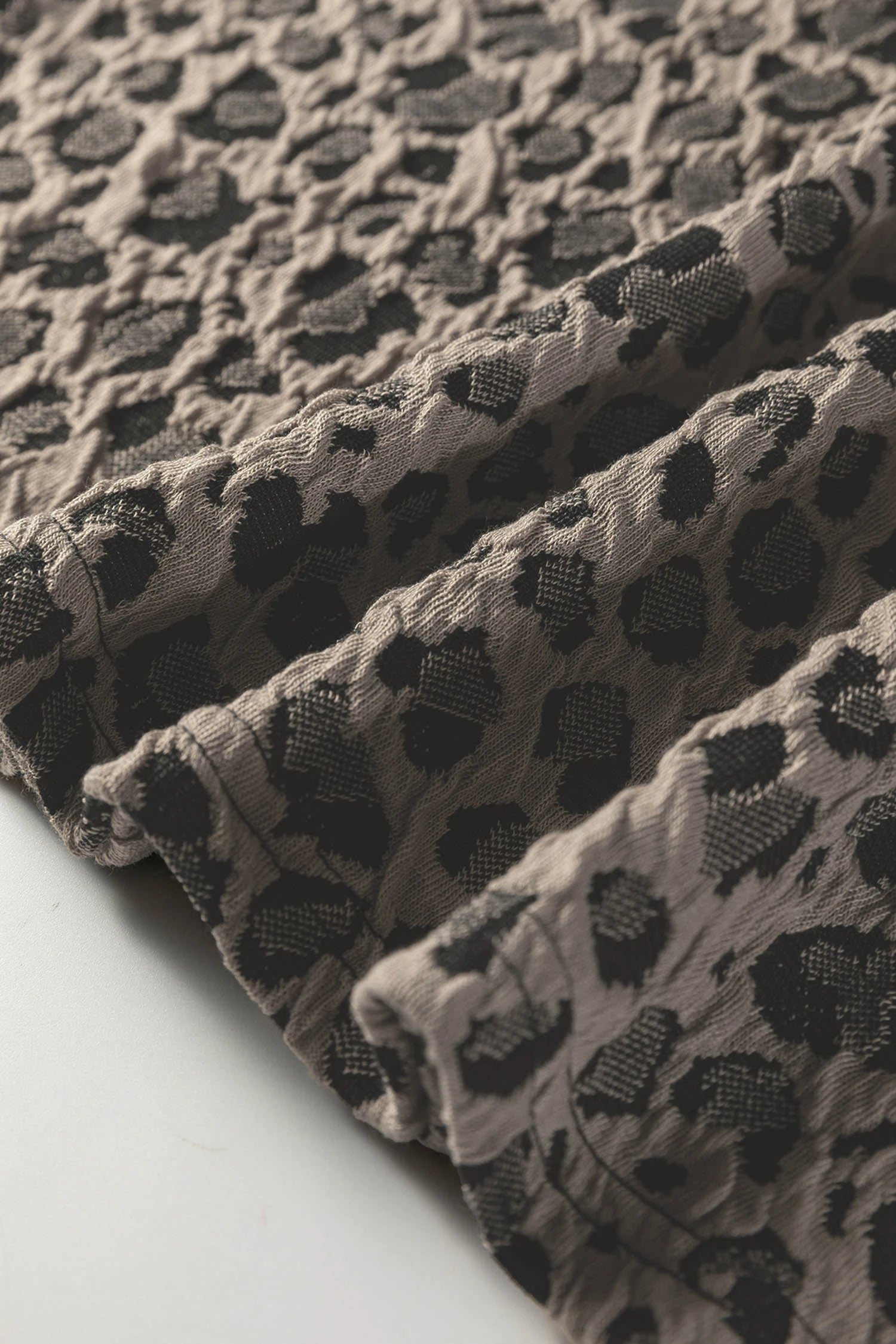 Textured Leopard Print Crew Neck Short Sleeve Top | S-XL