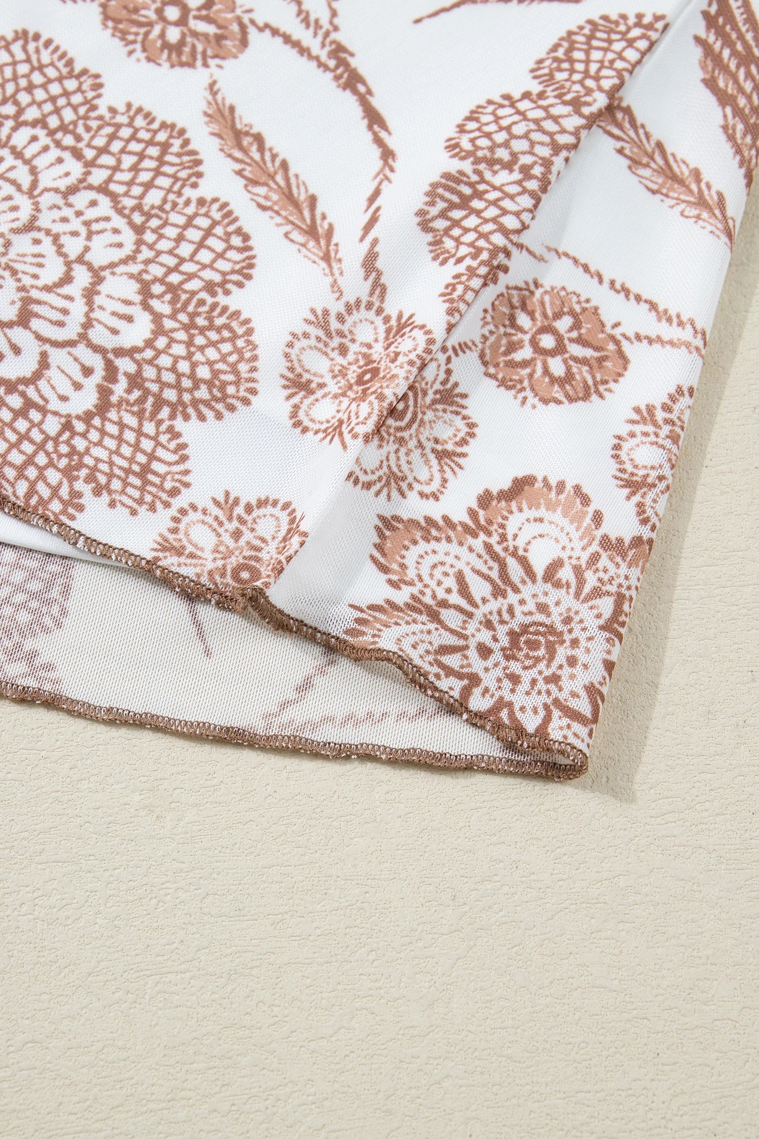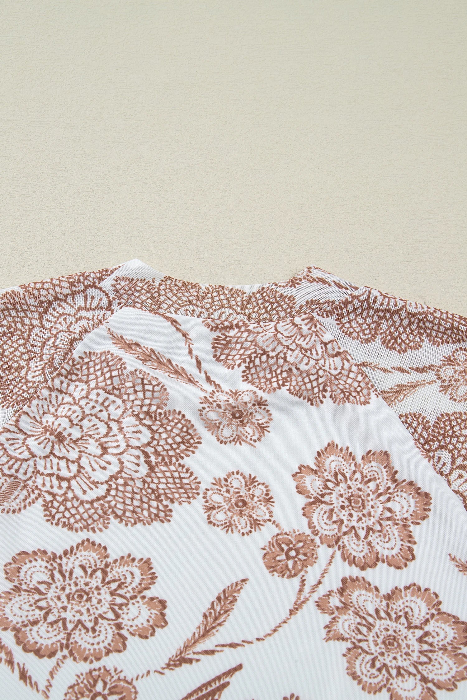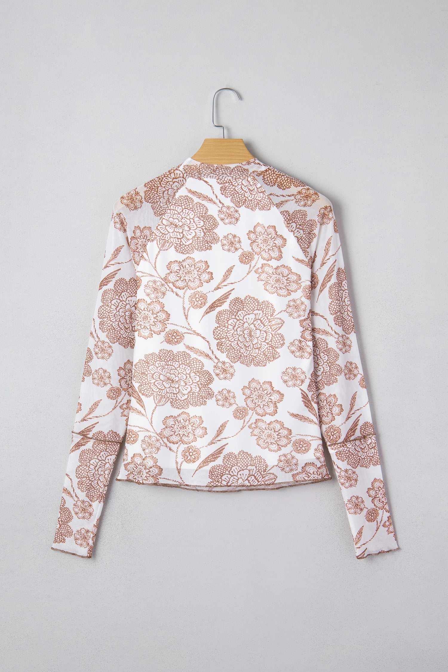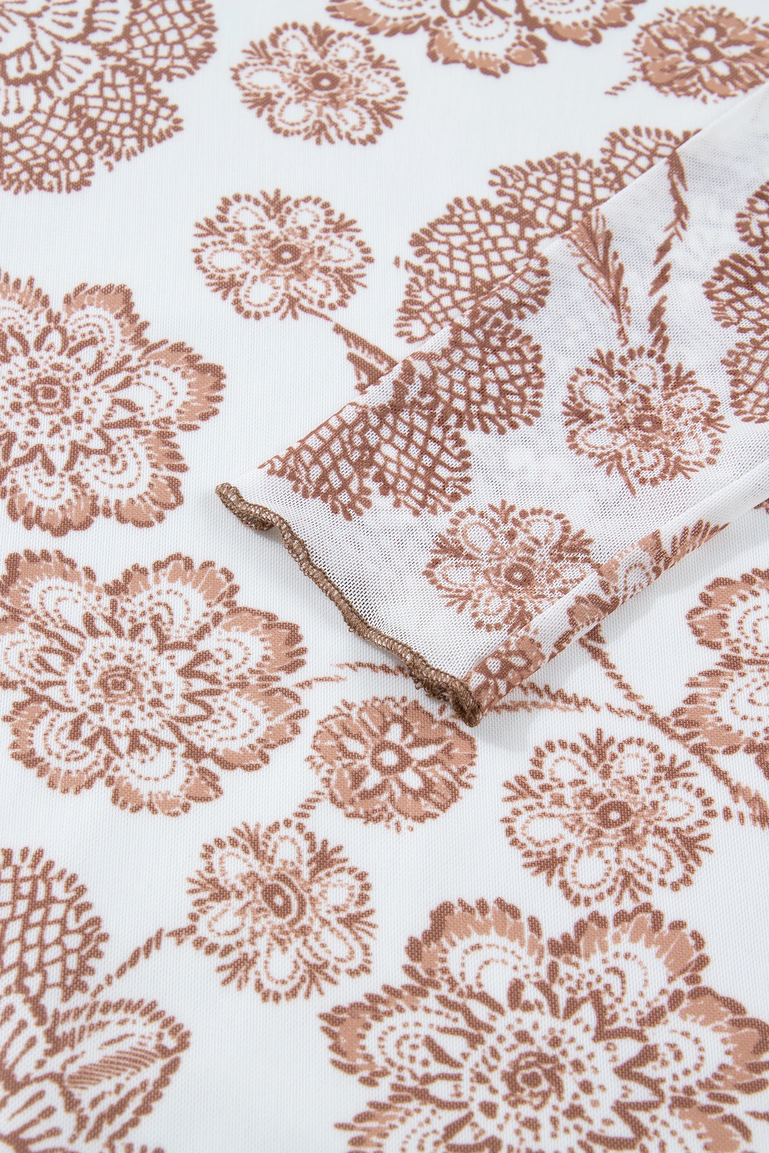 Thumbhole Long Sleeve Floral Print Mesh Top | S-XL