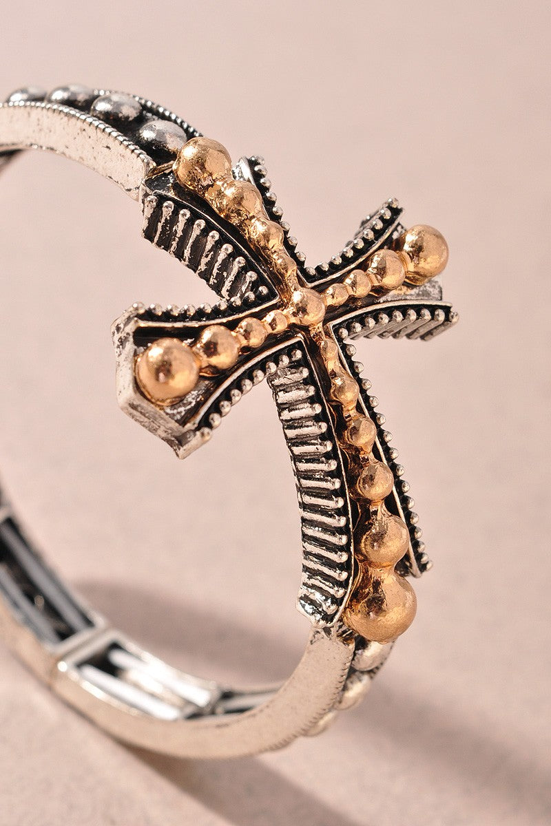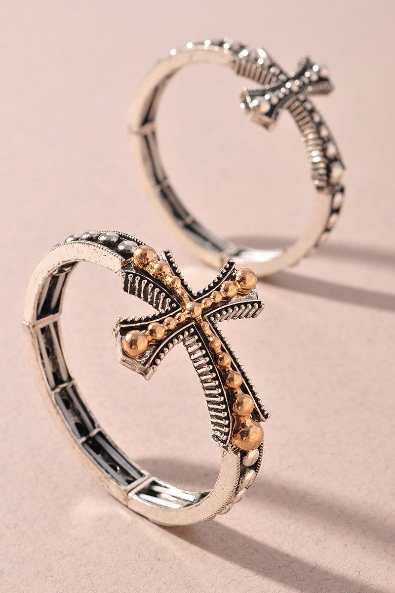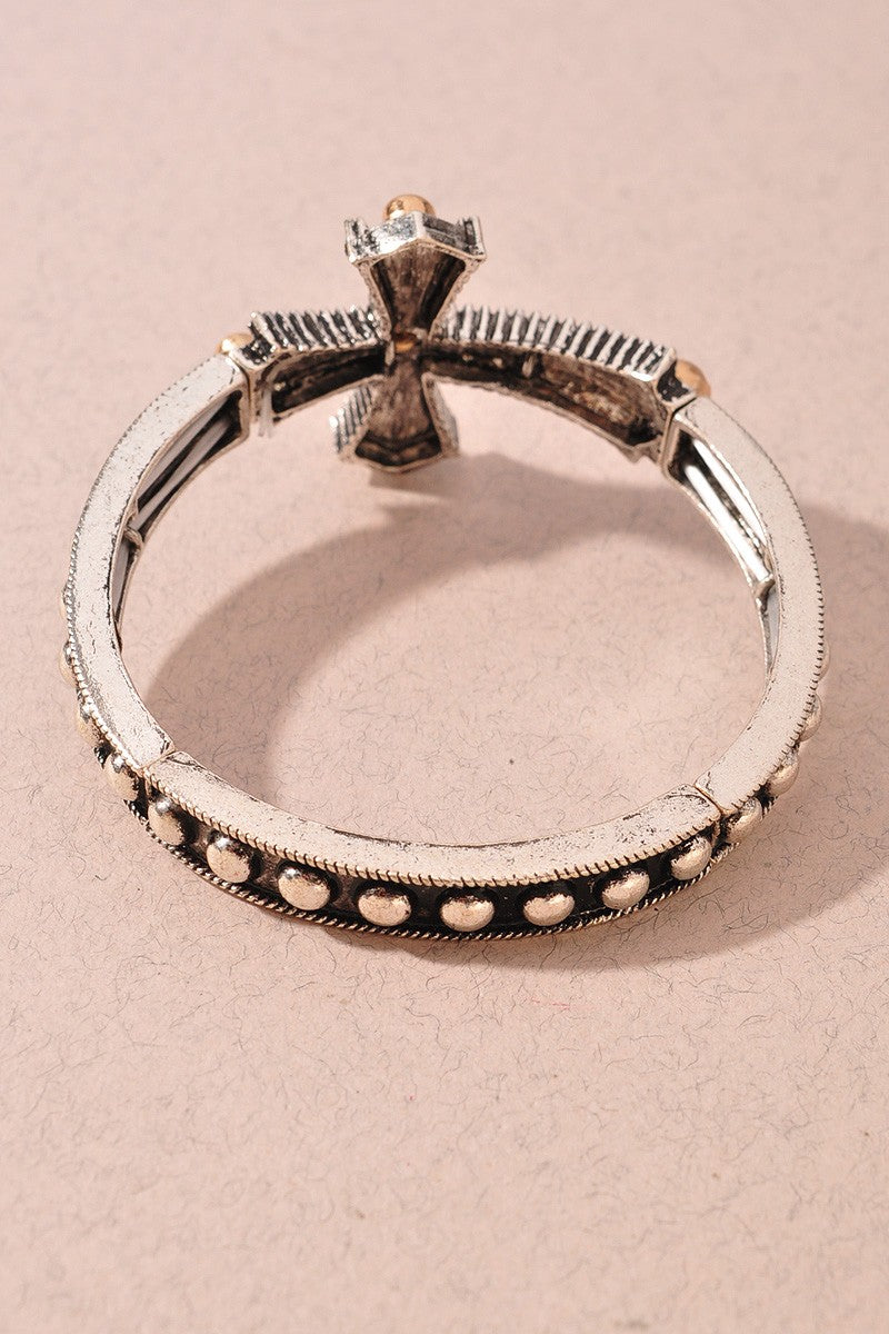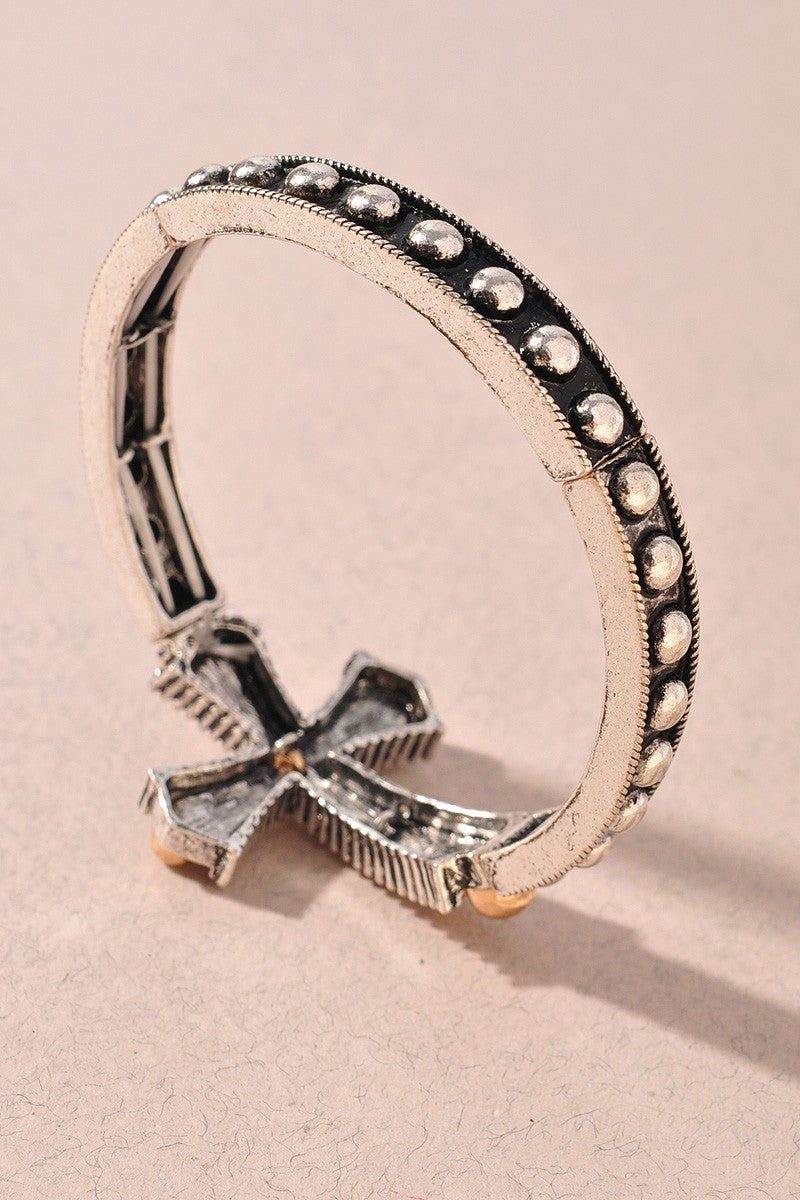 Western Style Rustic Cross Ball Bead Stretch Bracelet